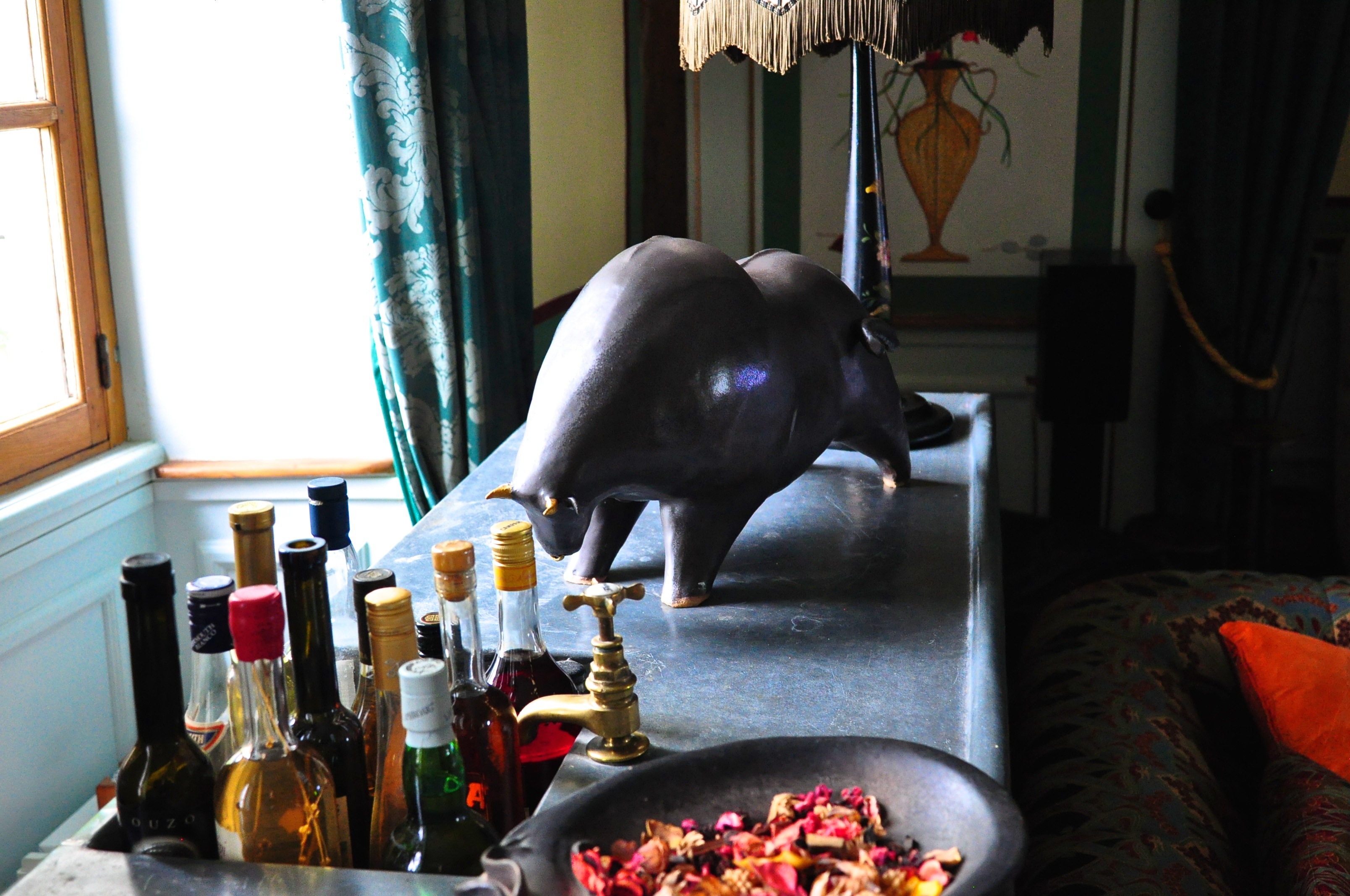 I want to live in Sandy and Zandra’s chateau for ever. I could hide Steerpikely in one of the top bedrooms and no-one would ever know I was there. I would sneak out early in the morning and snuffle around in the forest, rubbing loam and pine needles into my naked body. I would read and write and play with coloring books in the evening, sitting beside a wood burning stove, drinking fine wine and gorging myself on the produits de la belle France and laughing with the Mac Gillivrays.