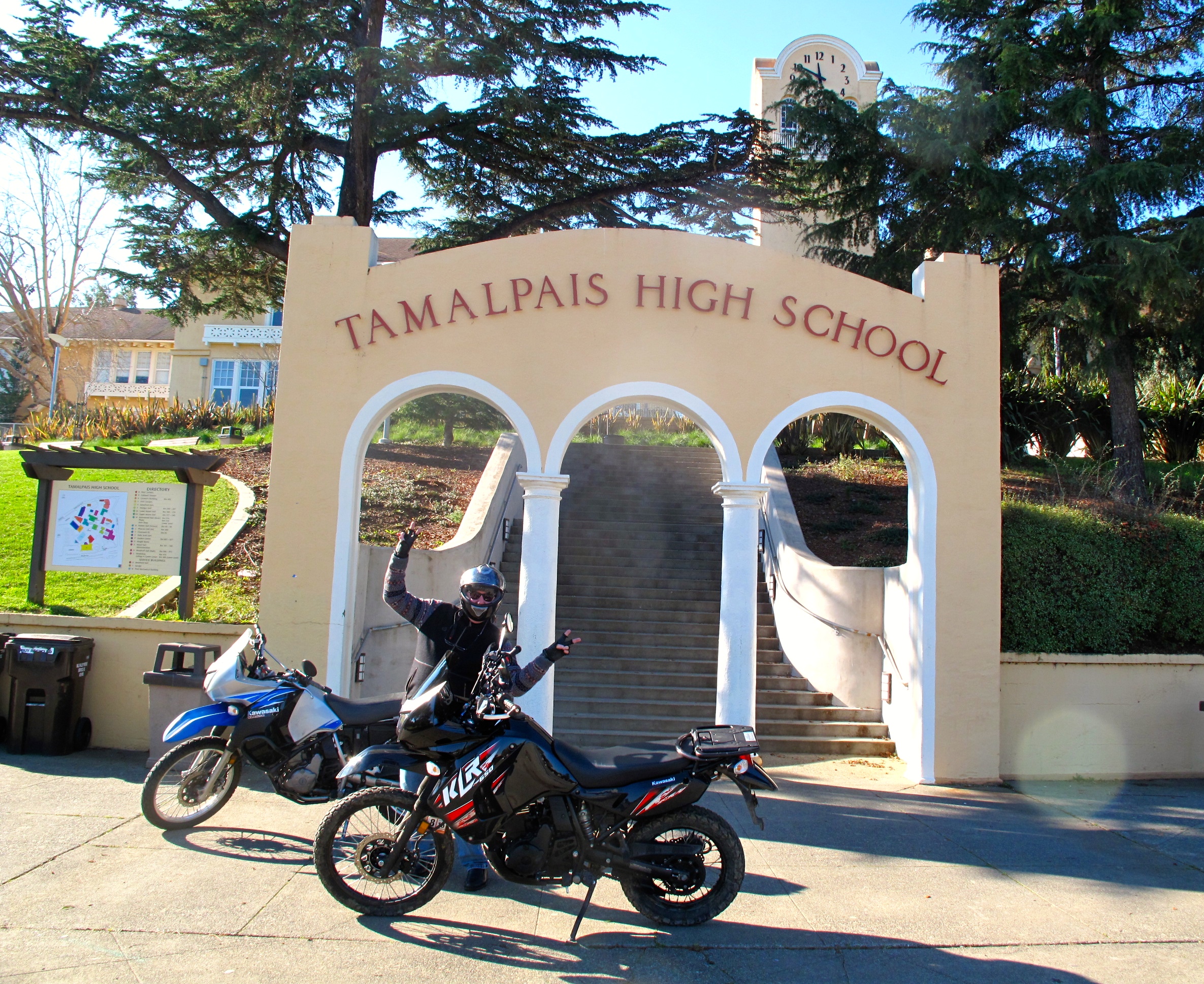 James and I then set out on the two KLRs. It is the best day that there has ever been er weather-wise and come to think it more or less every other wise. We have two objectives; to pay homage to the Tamalpais High School where Tupac went to school and to drive up the coast to Point Reyes to take a tramp.