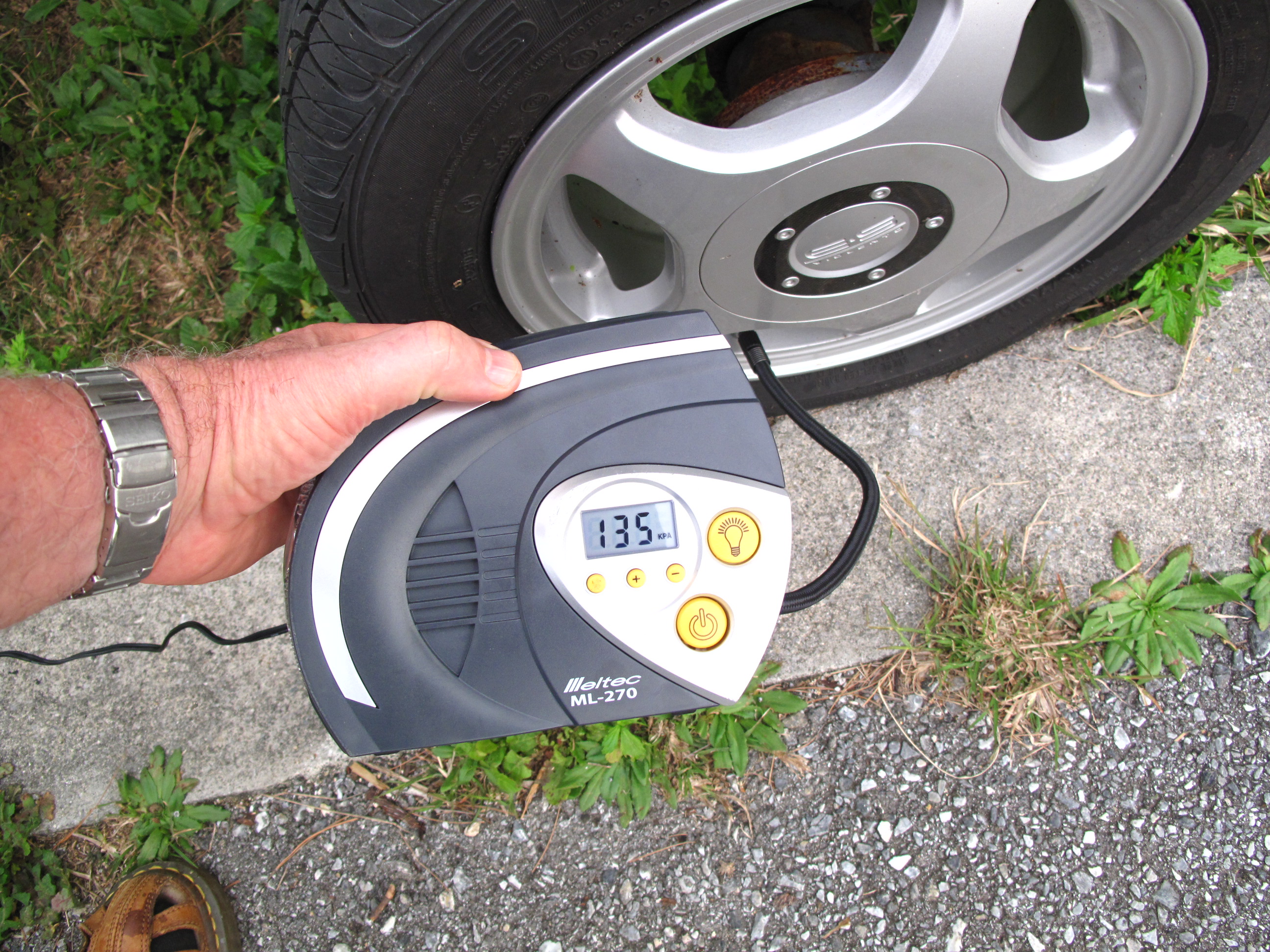 I don’t know if these things are available in the rest of the world. If not, here is your chance to make a million dollars. They are pumps for car tyres, or bike tyres if you want. You plug them into the power supply, or what used to be called the cigarette lighter, of the car and attach the pipe to the valve on the tyre.