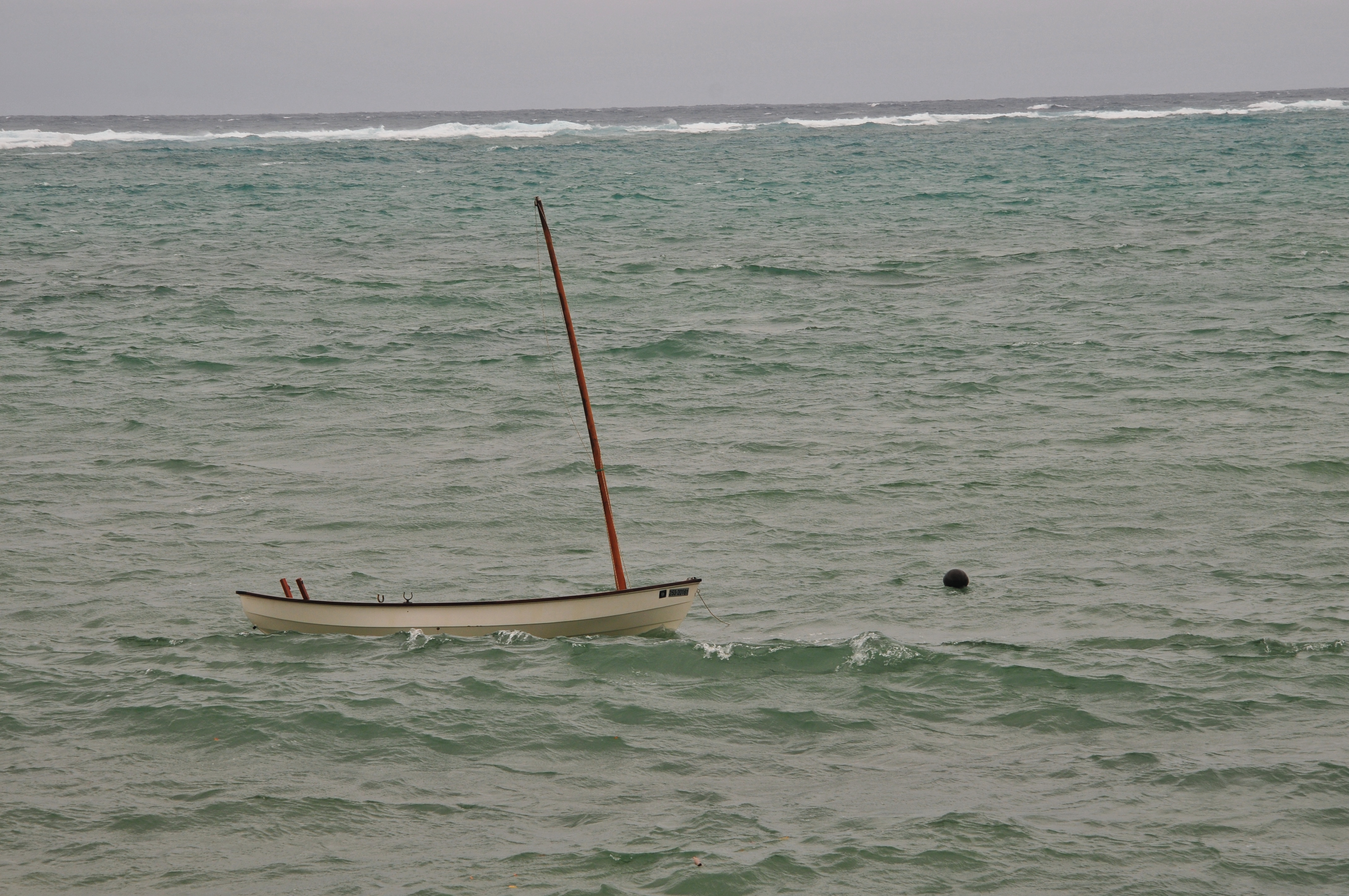 Big swells are crashing onto the beach and I use them to heave the bows into the seas as the waves lift her keel. I get her out into the water, which is mountainous, and begin to haul her back to the mooring. Once again I am up to my neck in the wild and wistful ocean at 6:15 am rescuing a boat.