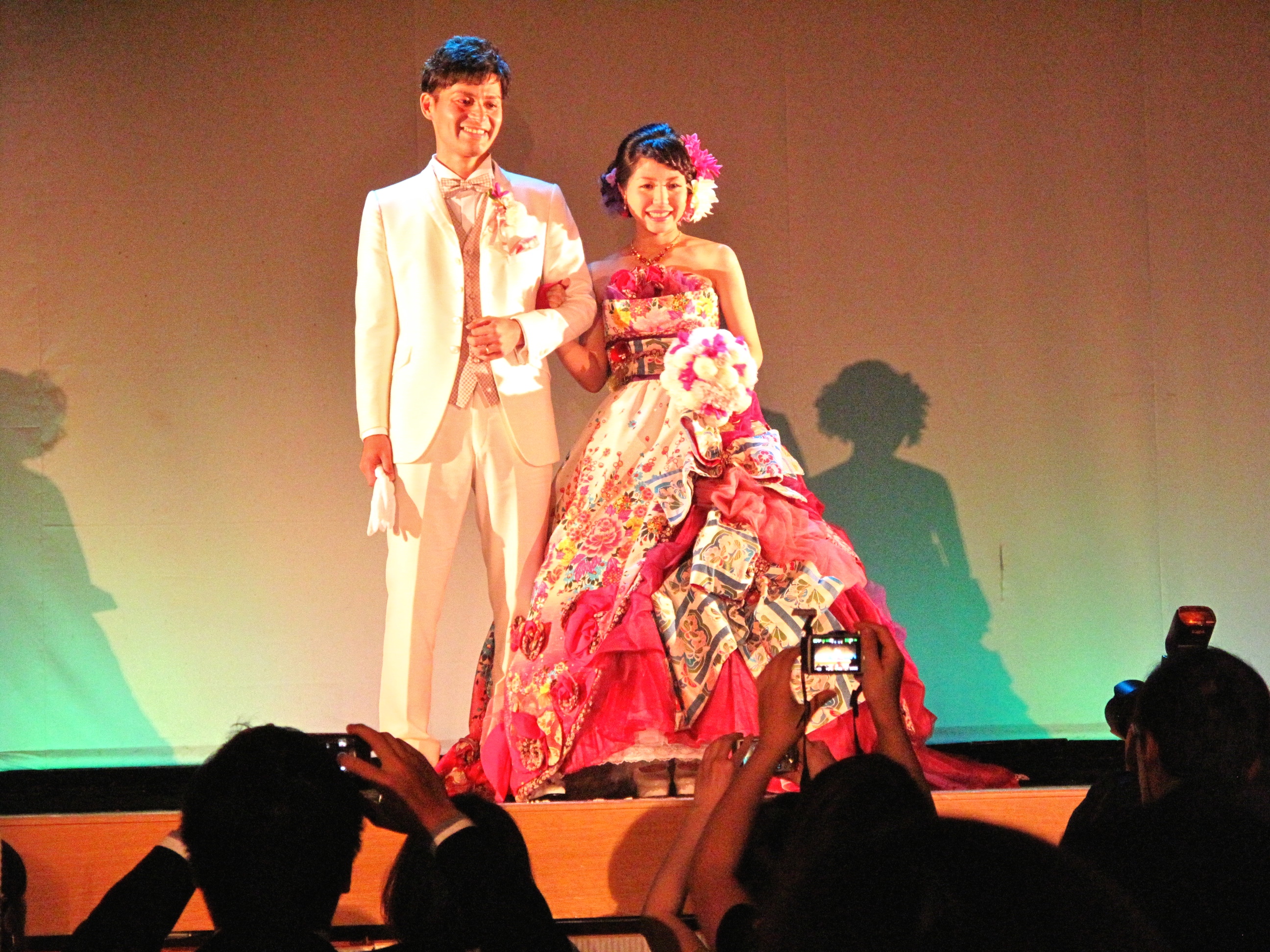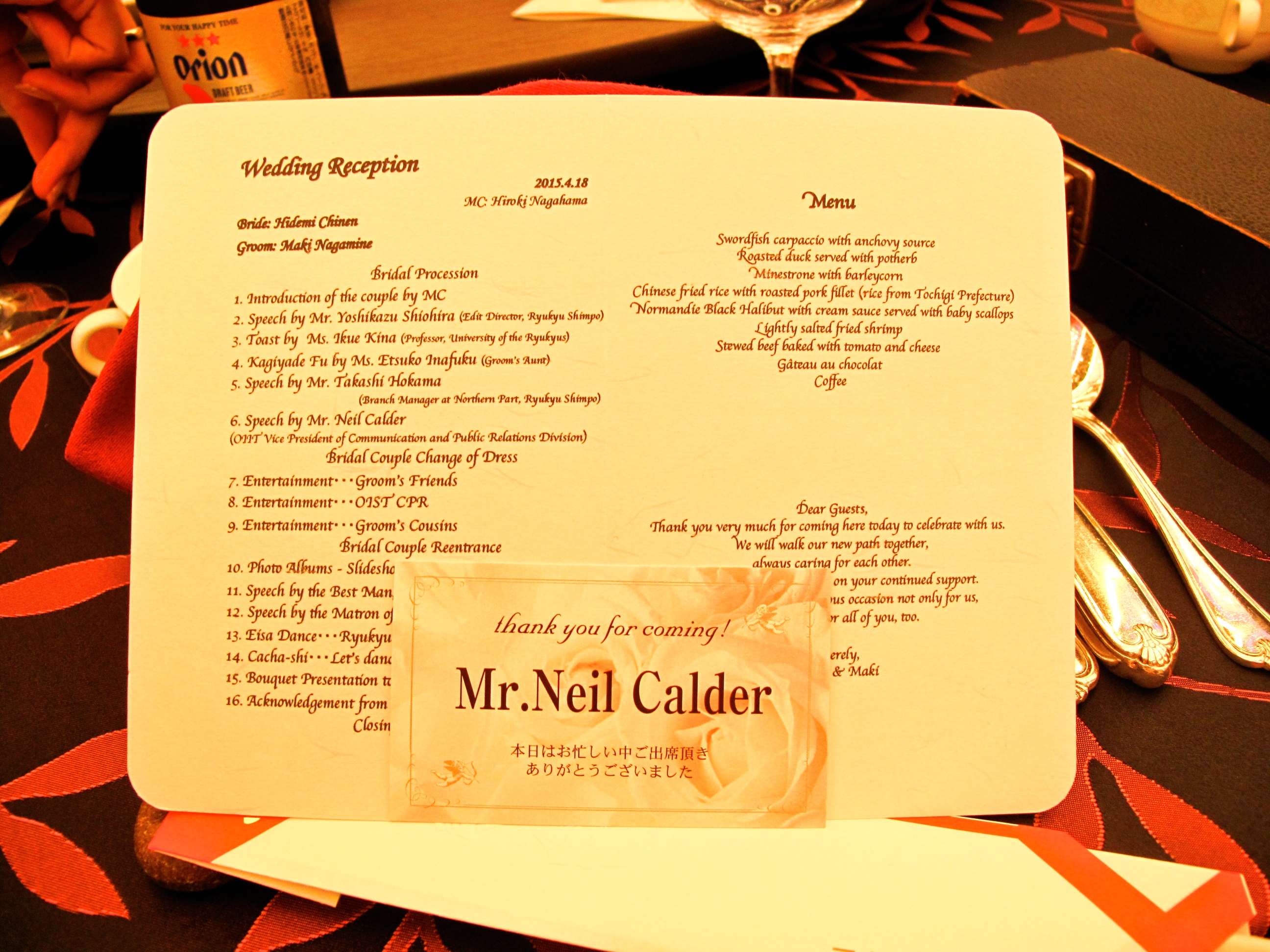 Okinawan weddings are a riot! A colleague, Hidemi san becomes Mrs Nagamine and a big reception is held. The business starts at 12:30 and continues through to 4:00 and then the younger people go off to party.