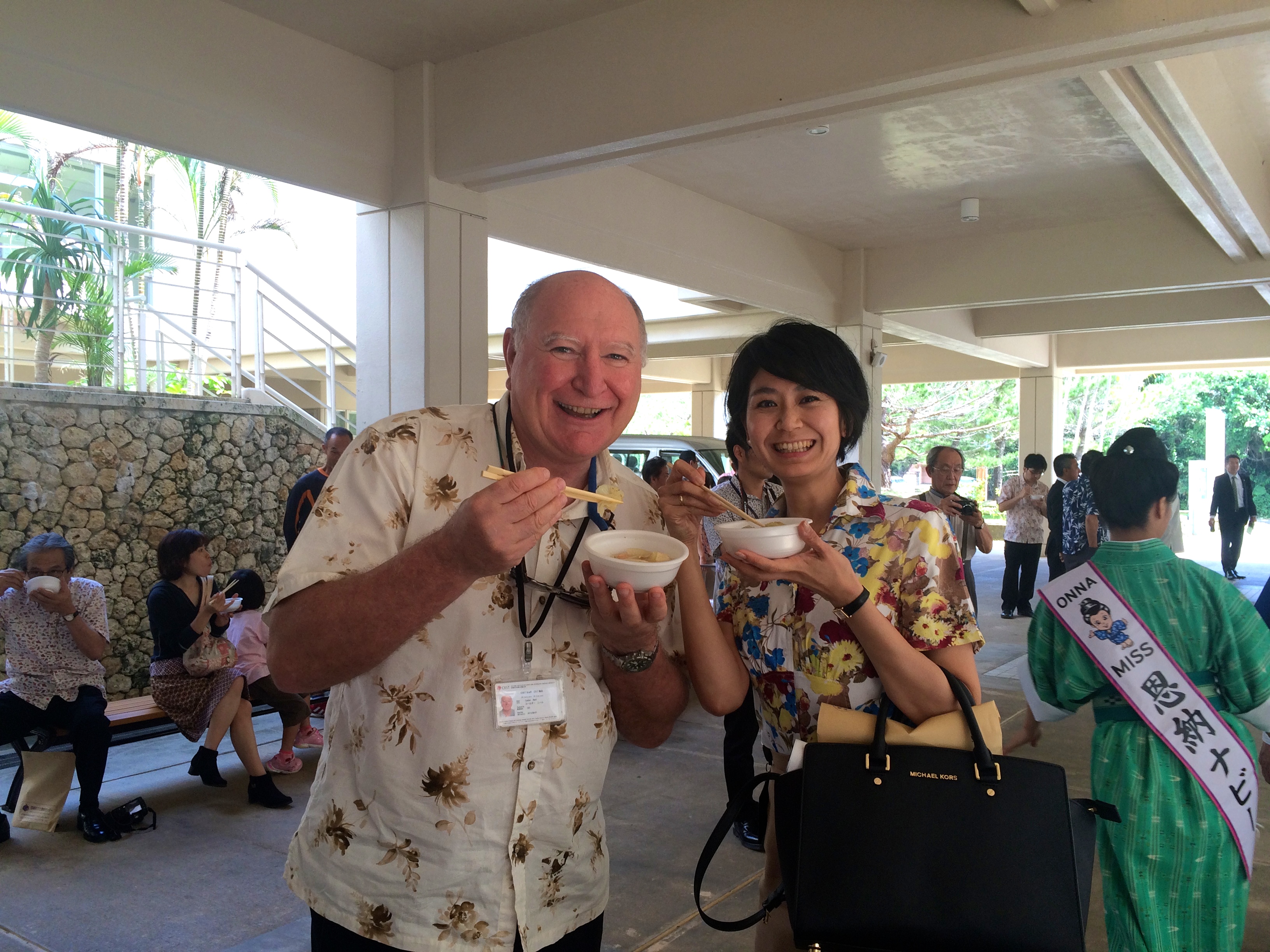 Onna son has a brother? sister? twin? town in Hokkaido. The delegation from Hokkaido prepare steaming cauldrons of a famous Hokkaidian fish soup.