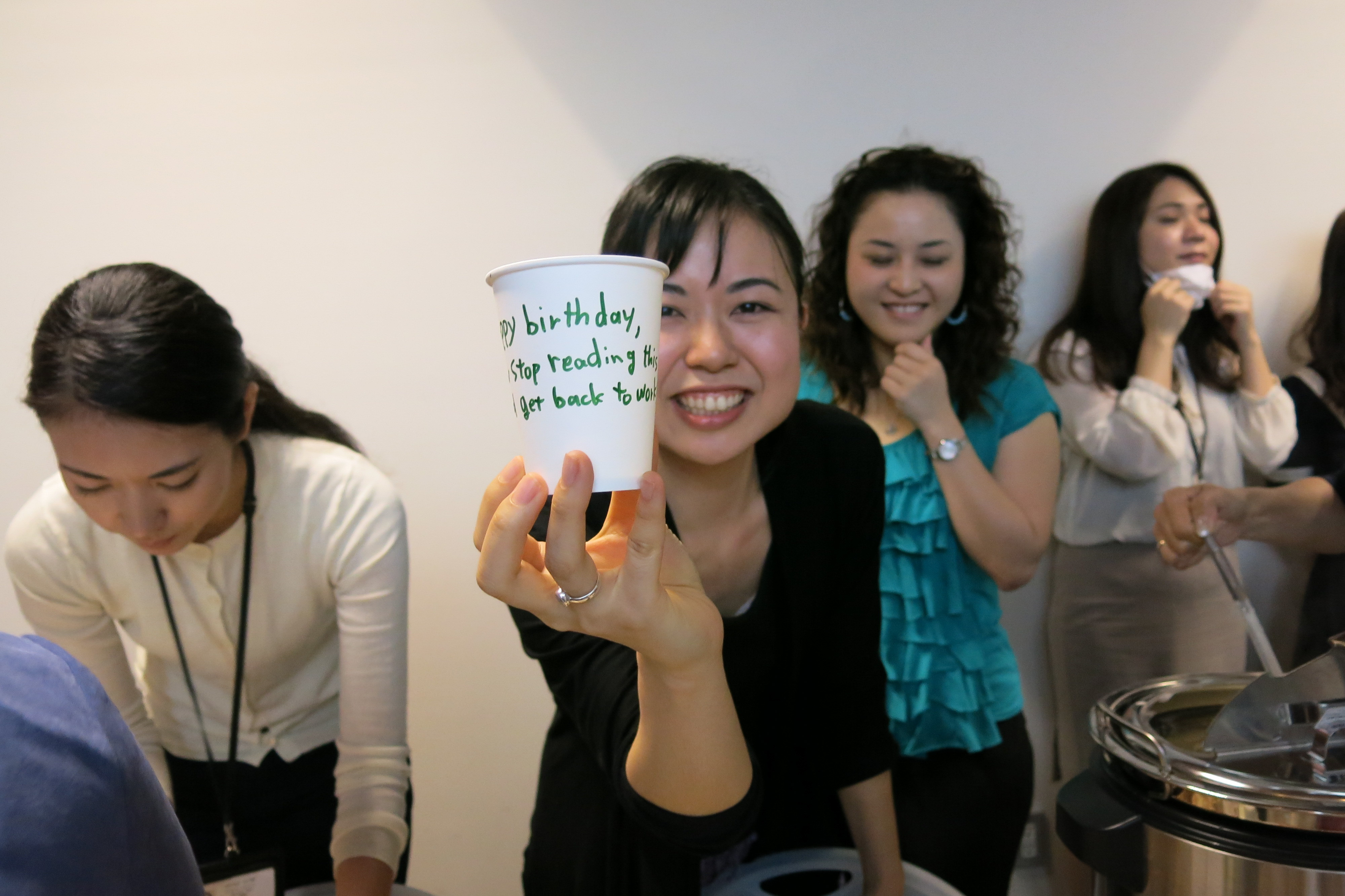 We drink Okinawan clam chowder – oichi!  The wonderful people at Kaito had written on each and every paper cup.
