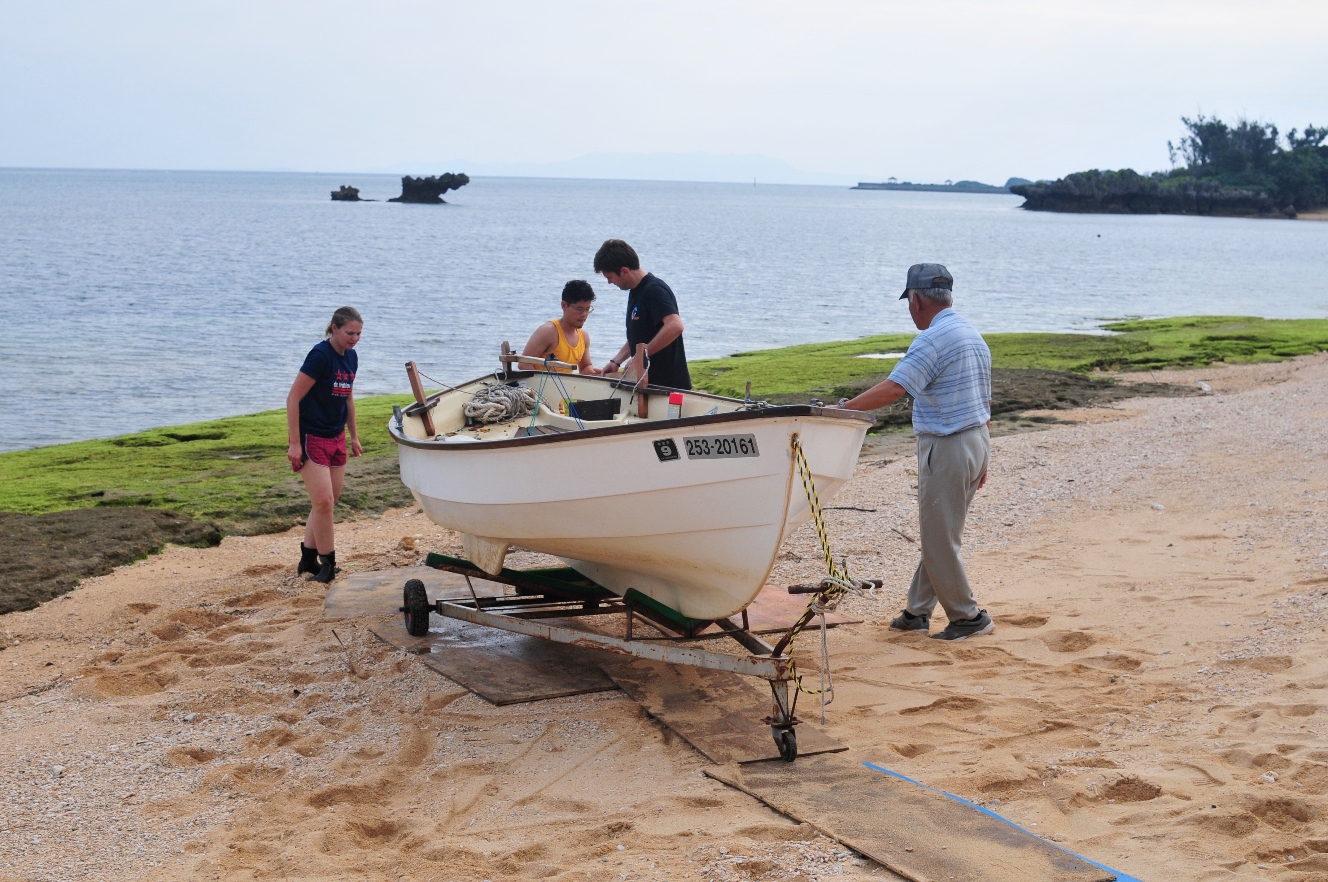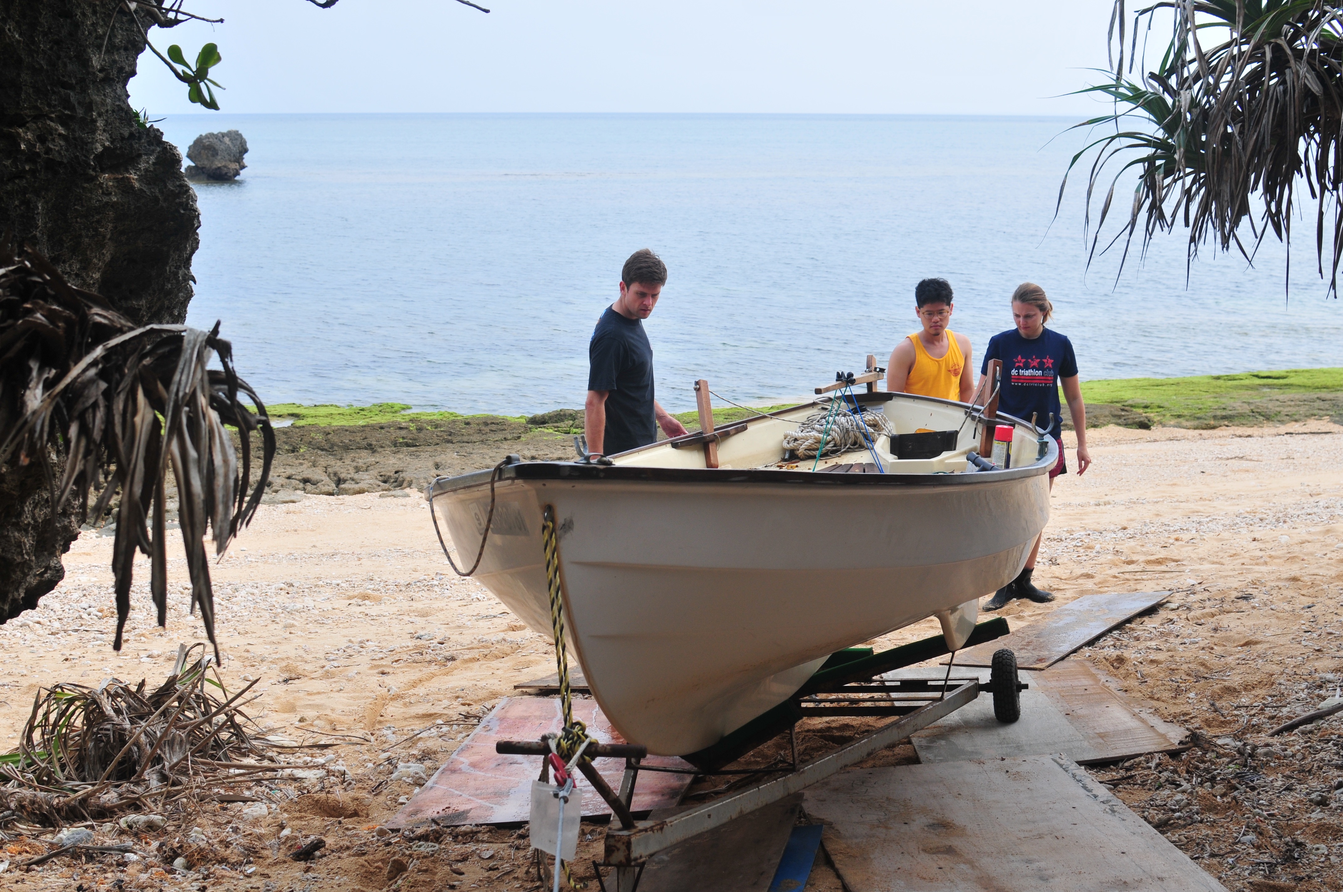 Cancellations of various meetings leaves me with a more or less clear day. I jump on the opportunity to liberate the Scaffie. A very highly educated team show at 07:15. We rush to the hiding place and slowly but surely ease the Scaffie down the beach. I love this stuff! So many meetings during which my main focus has been how to run a Drascombe Scaffie down a remote beach on the East China Sea.
