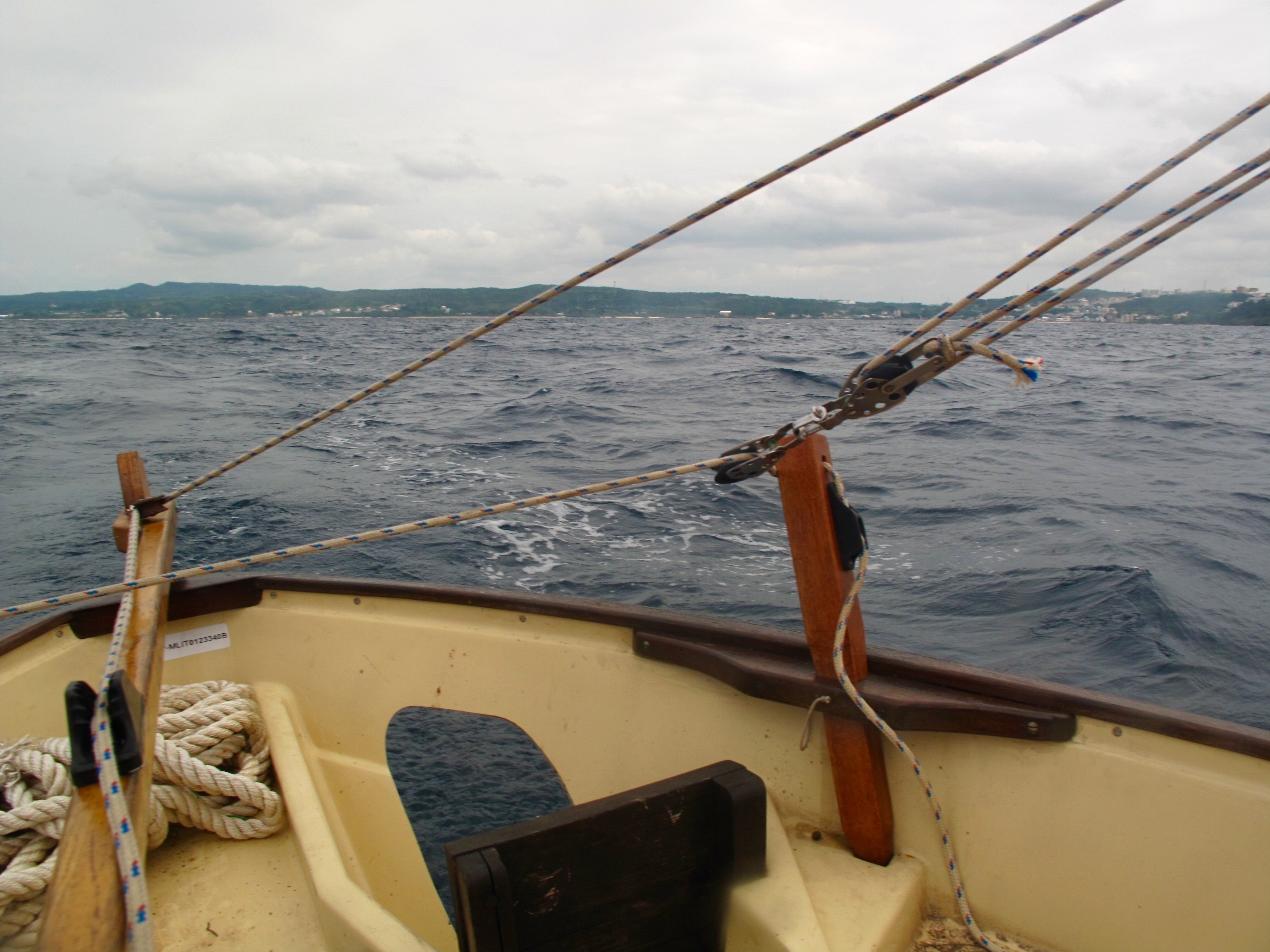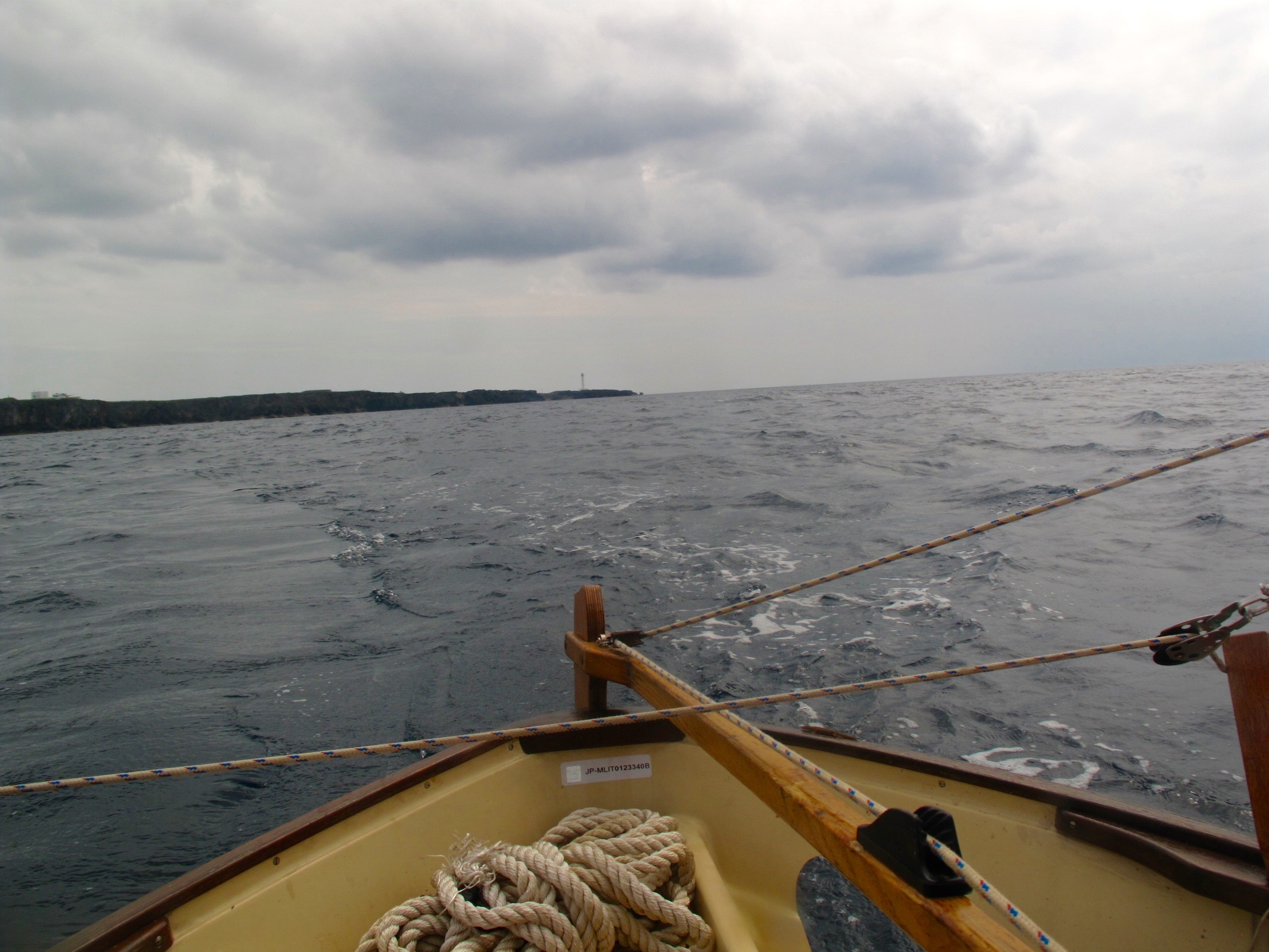 The other thing that I have been worrying about is whether the Black Naped Terns have come back to nest on the cliffs of Cape Zampa. There is a strong wind blowing and the sea is fairly wavey. I set off on a broad reach towards the nesting sites. The Scaffie charges along and we get there in 30 minutes.