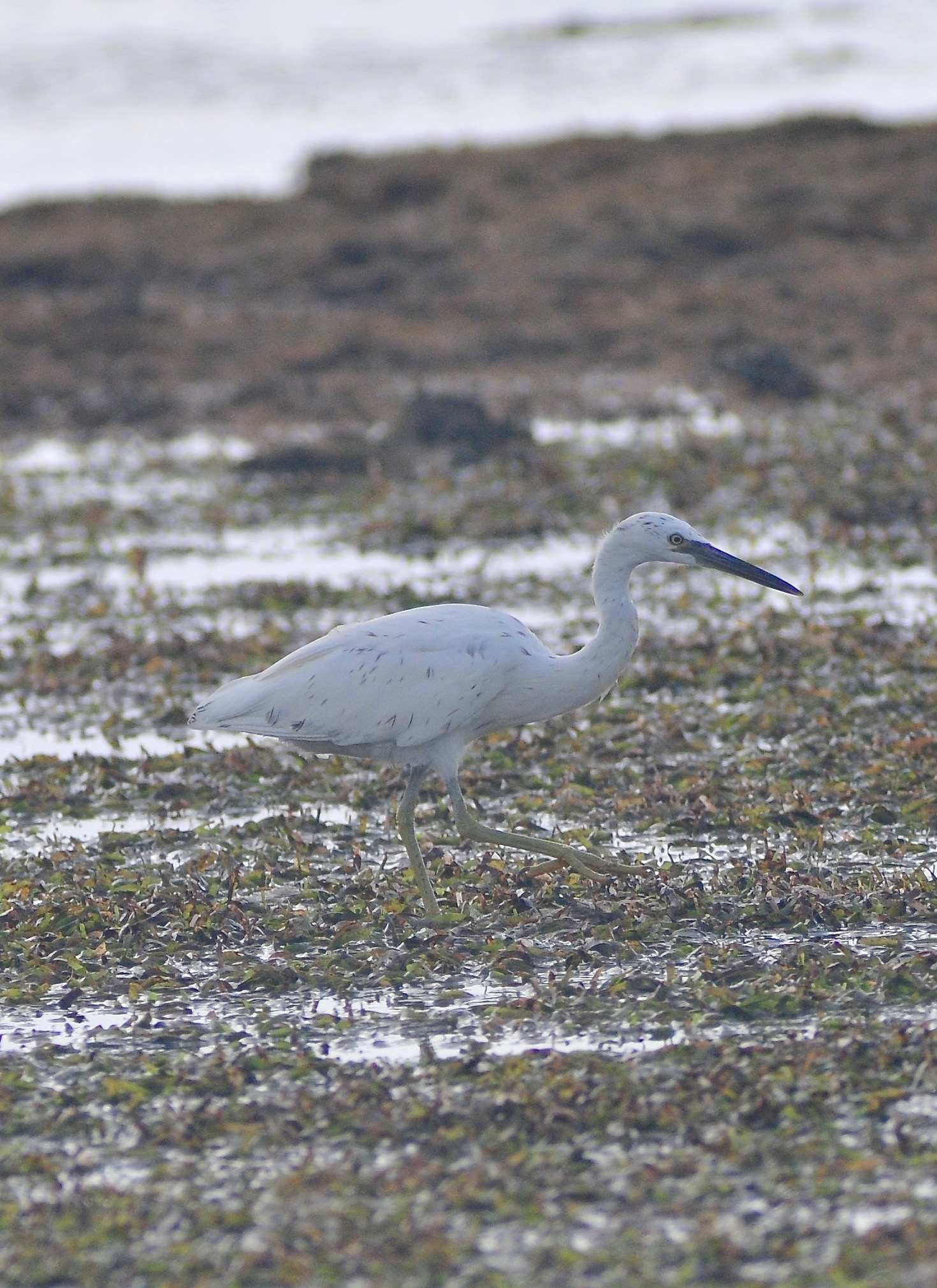 Pacific Rim Egret. This egret comes in 2 morphs , one white, one grey. This is the first dappled one I have seen.