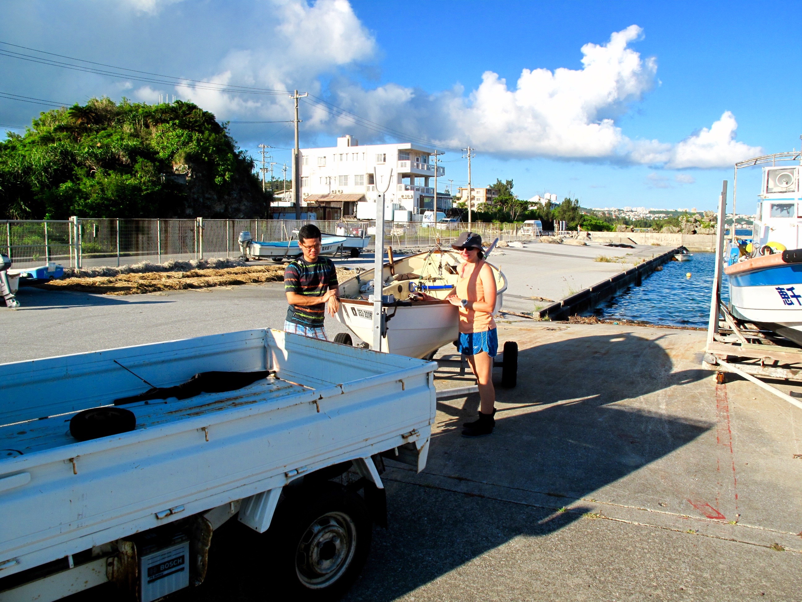 Everything goes wrong. The battery of the mighty Hi Jet is flat. We manage to start her using jump leads attached to Hisashi’s rig. We get to the harbor but subsequently the mighty Hi Jet refuses to start no matter what power is injected from other cars.