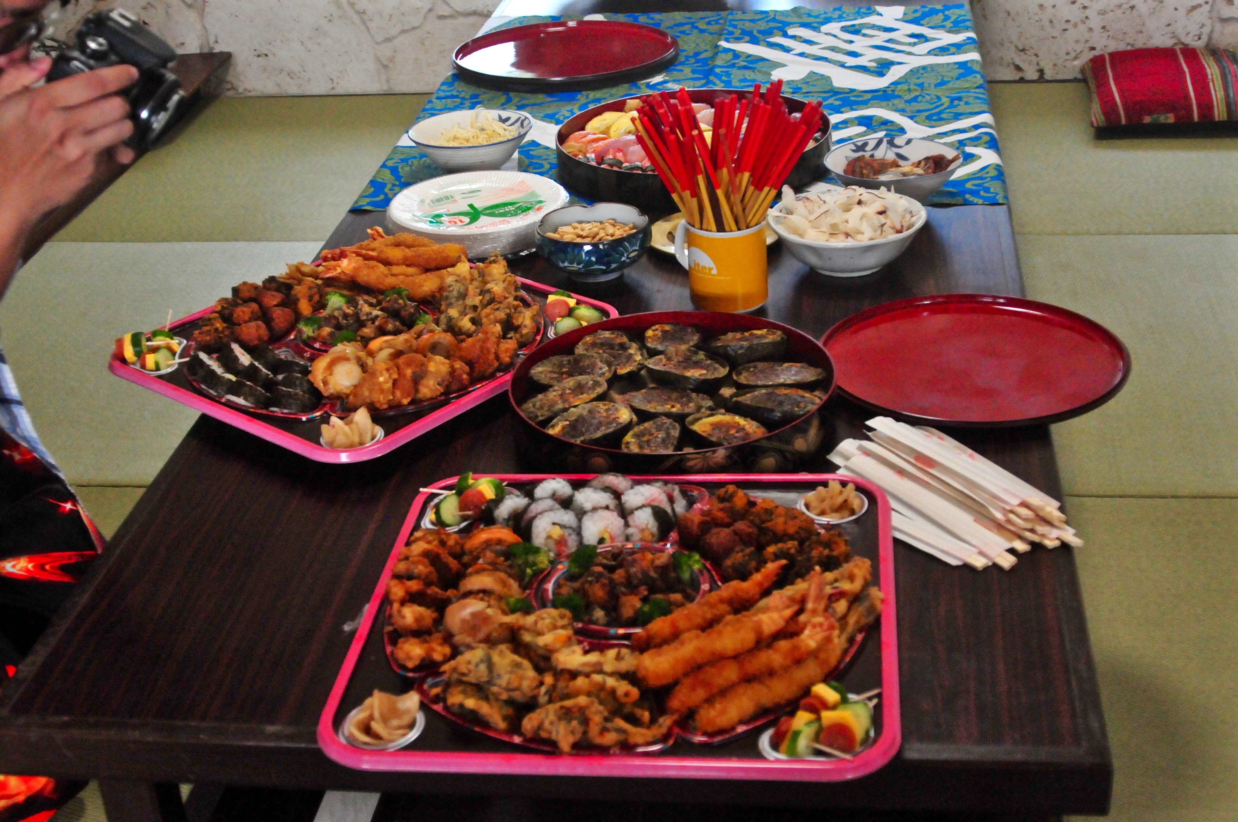We eat food prepared by Ishigaki san and Koda san who are my best friends.