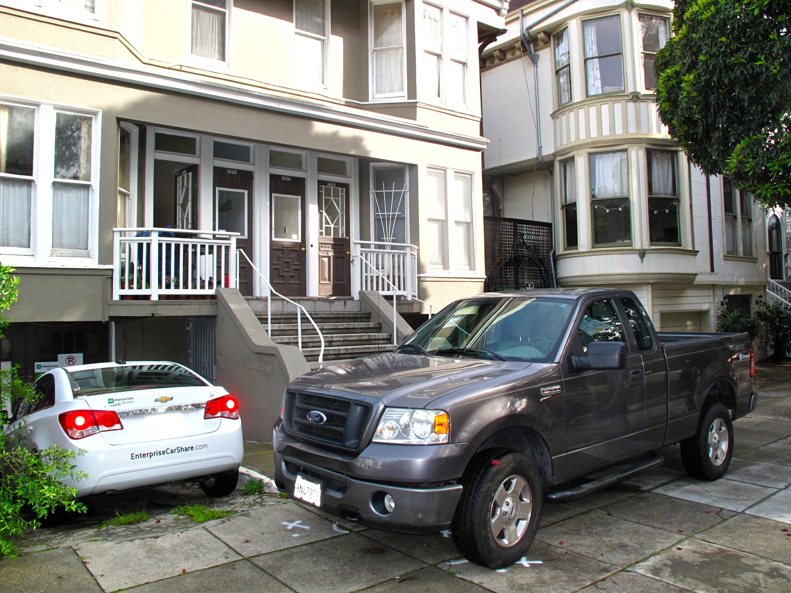 You just go to the app and search for cool truck and it shows you where the nearest one is. It kept coming up with 1701 Fell. We took this to be an error as we live at that address. Finally we went outside and there was a big shiny F 150.