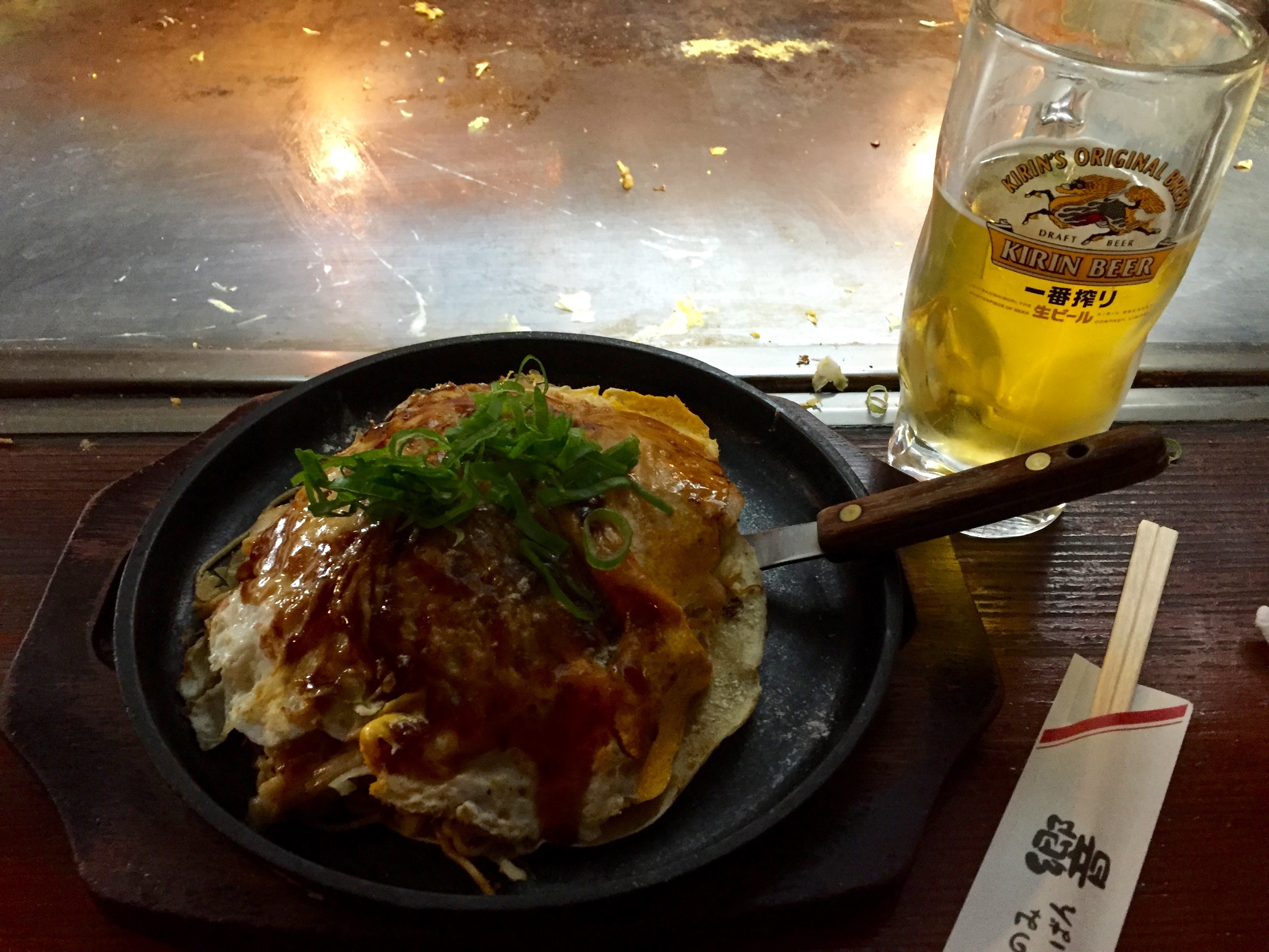 The night before the thing we have to do, we go to eat okinomiyaki, which is like indigenous in Hiroshima.