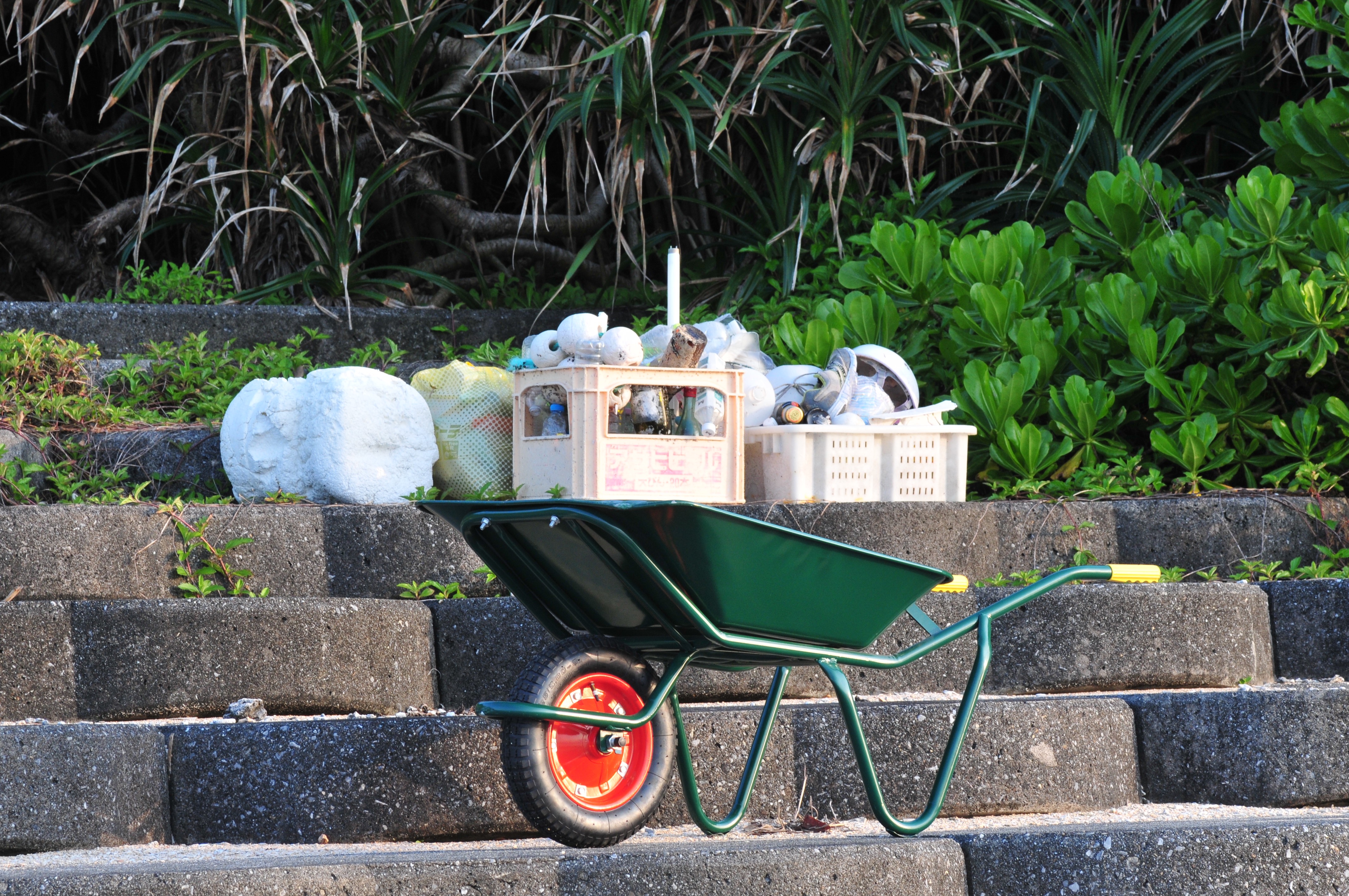It is a drag to er drag all this sea junk back to the road. So I move to a new level of beach commitment by purchasing a wheel barrow.