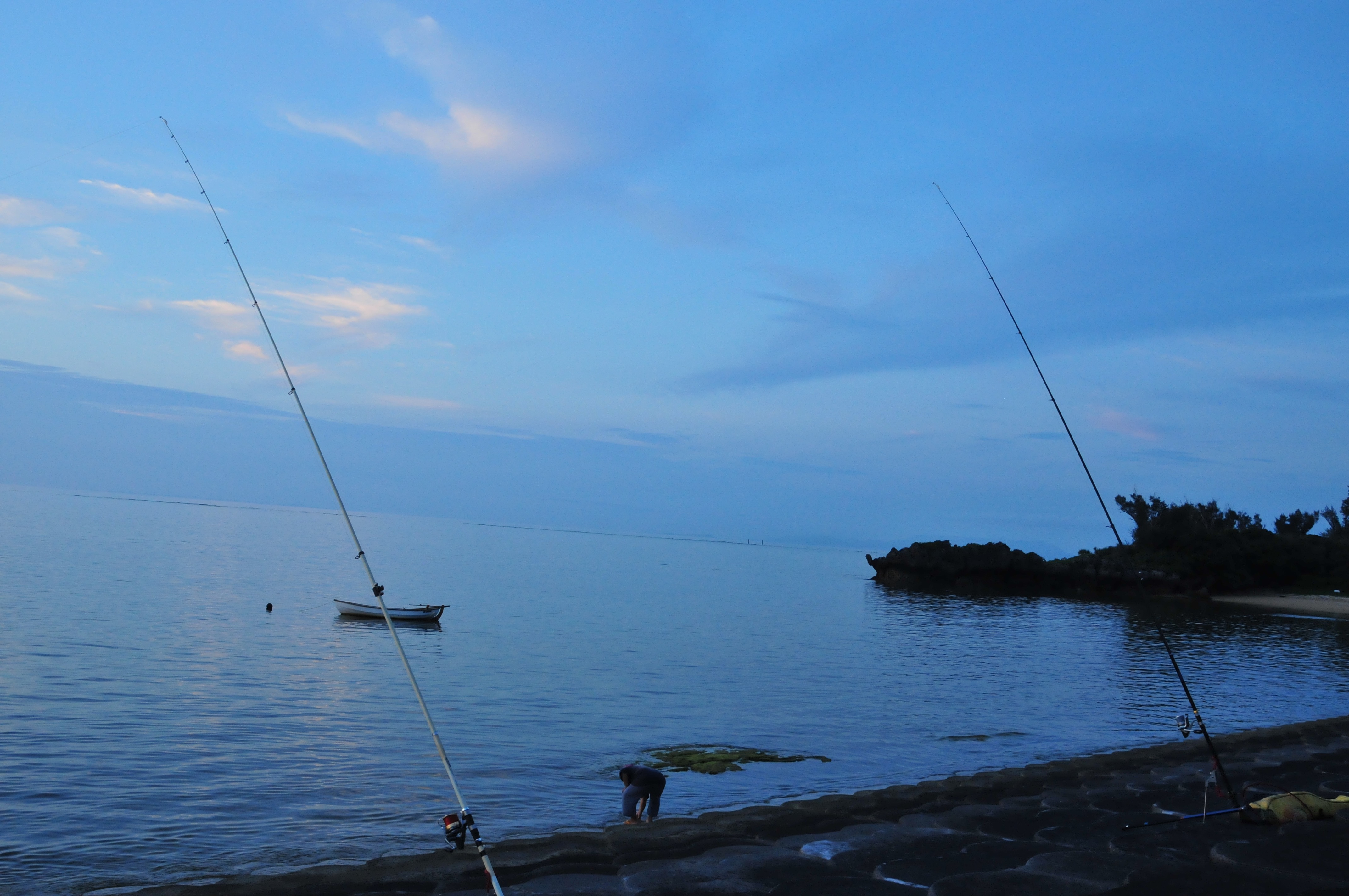 I go into a long mime of how we can fell the tree such that it falls into the Jurassic vegetation that separates us from the sea. No worries.