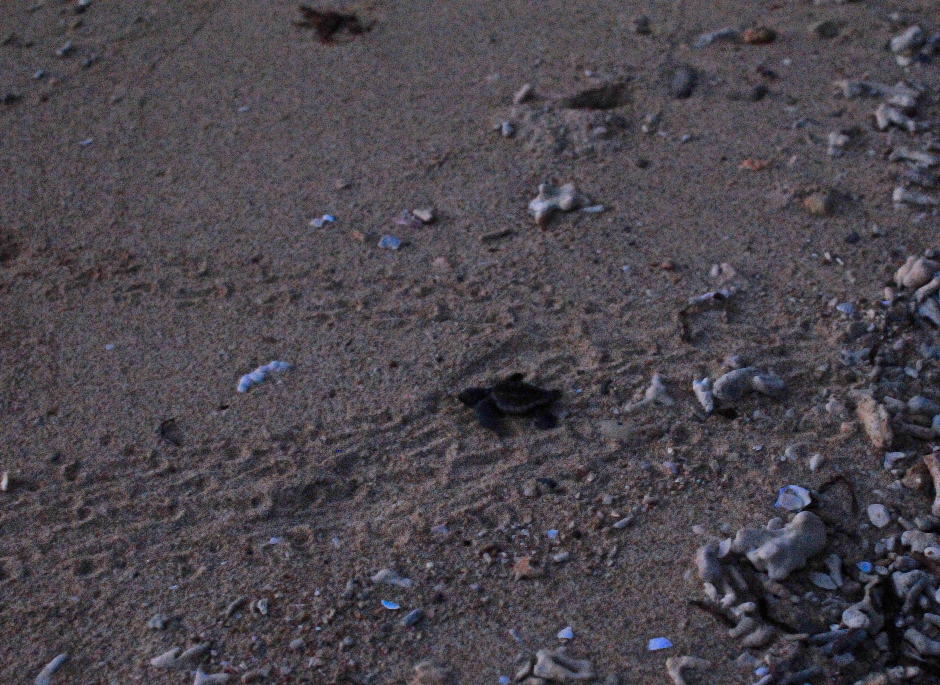 It is too dark for photography and flash would not be appropriate. The little darlings go like hell straight to the sea and off they swim. One in a thousand grows to adulthood – boo hoo.