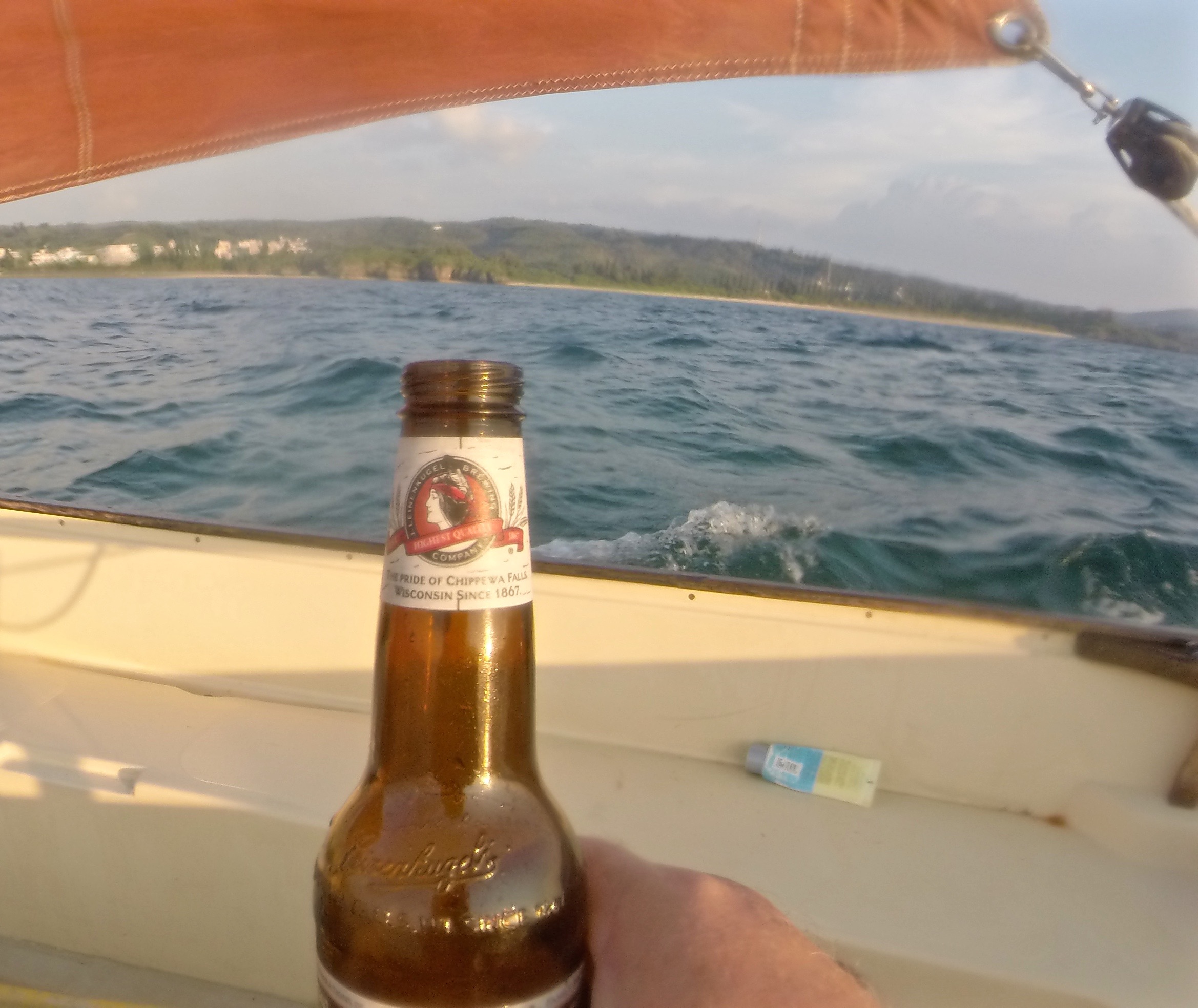I look at it accidentally and discover that it had been brewed in Wisconsin. Wisconsin! I am surging over the reef in Onna son on a hot Okinawan evening, drinking beer made in Wisconsin.