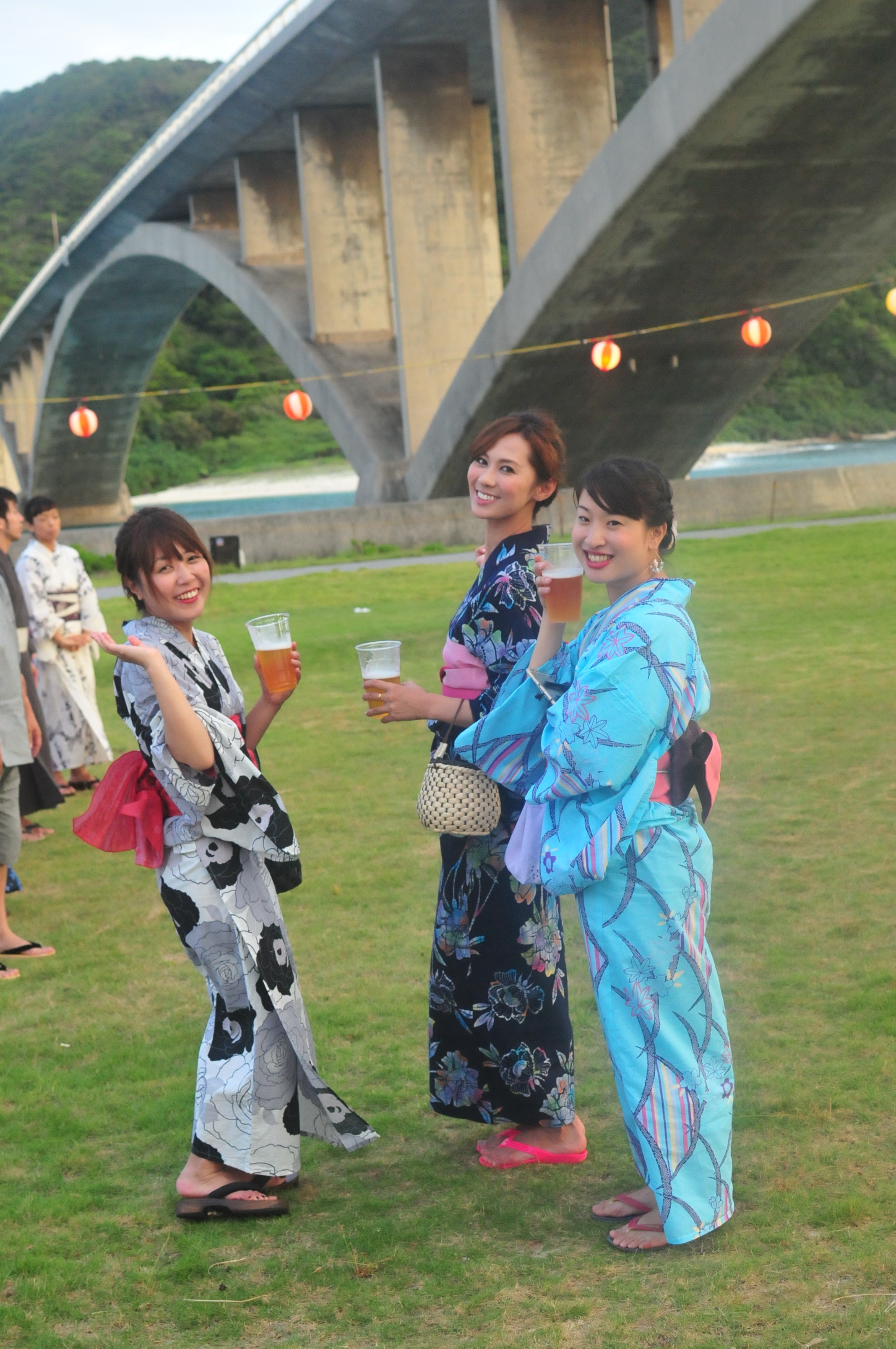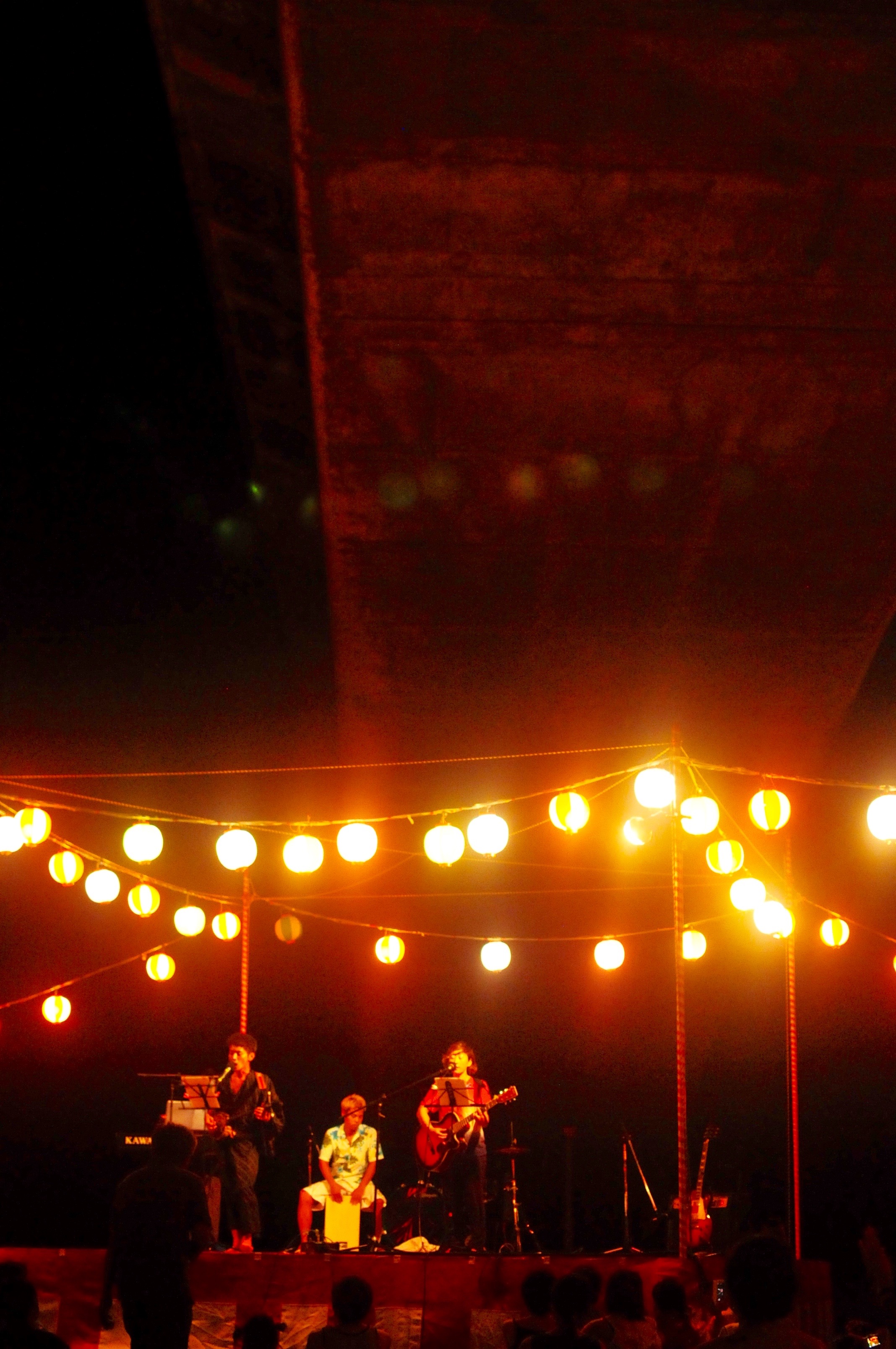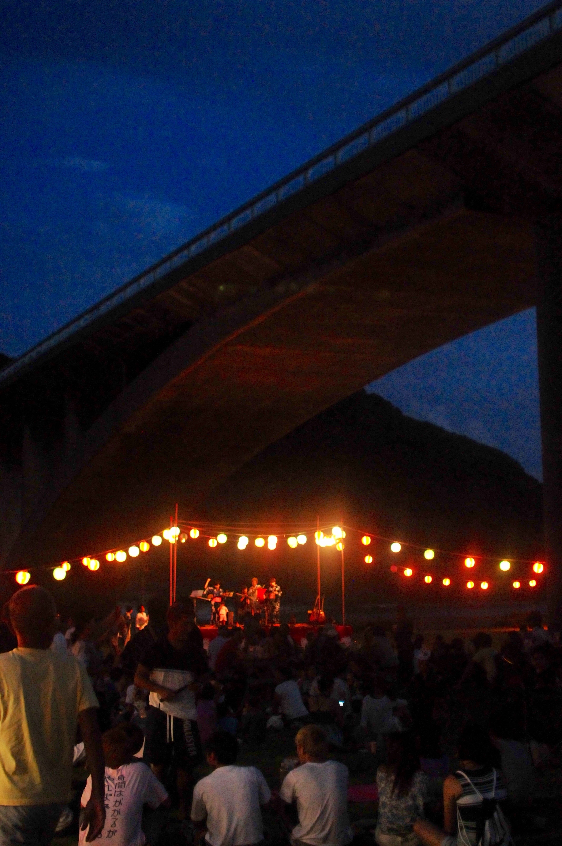 So we are in Aka at exactly the right time for lo Saturday night is Matsuri night. The big summer festival is held under the bridge. It is a bit like Glynebourne. Everyone sits out on the lawn having an evening picnic before the show starts.