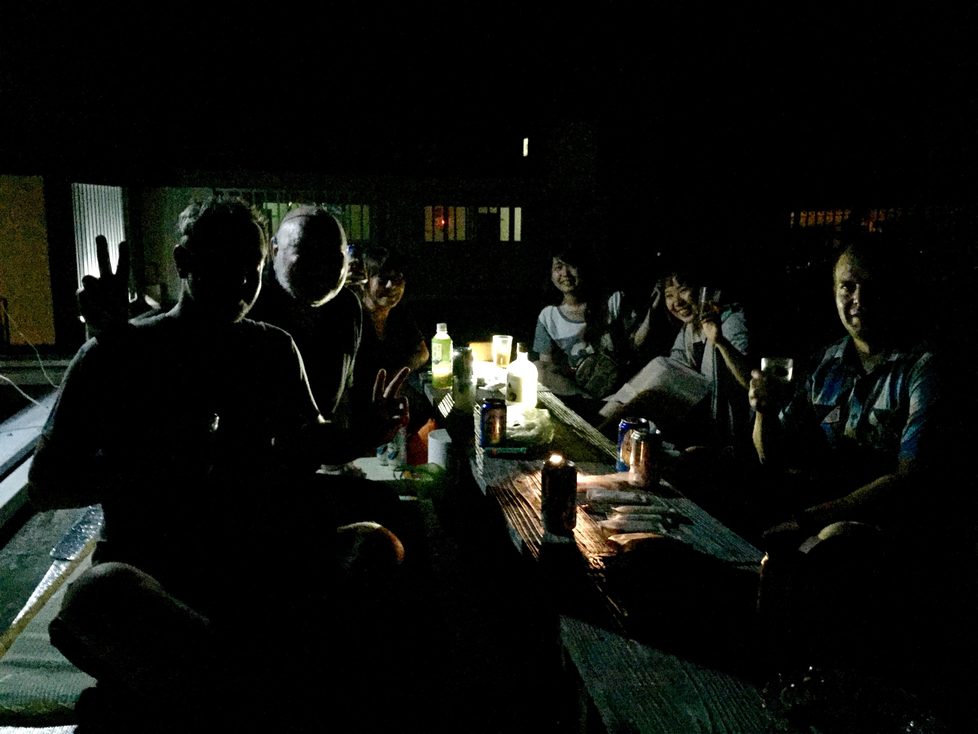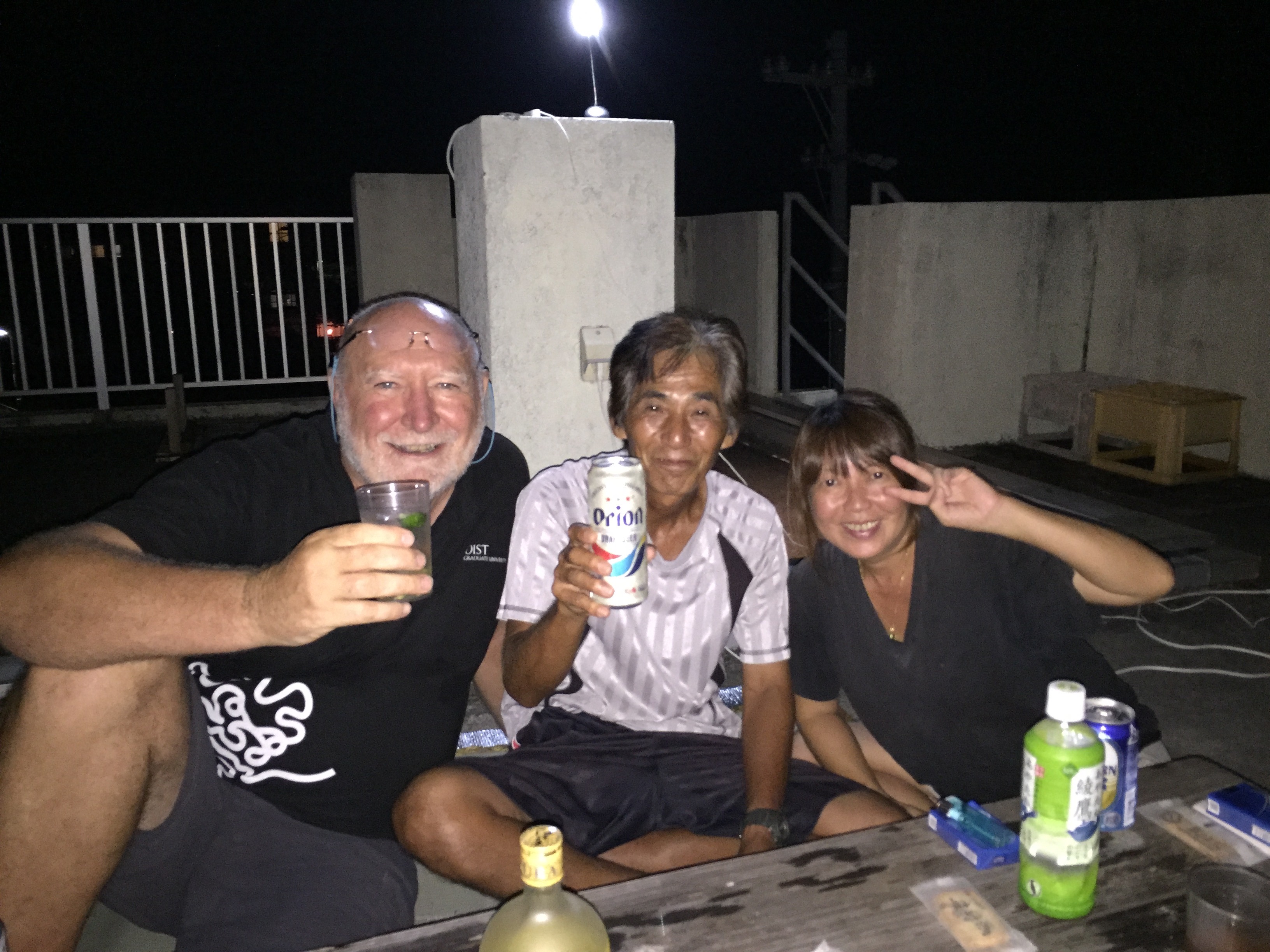 Kinjo san and his wife Mari san, as what own the guest house, ask us up on the roof to watch the stars.