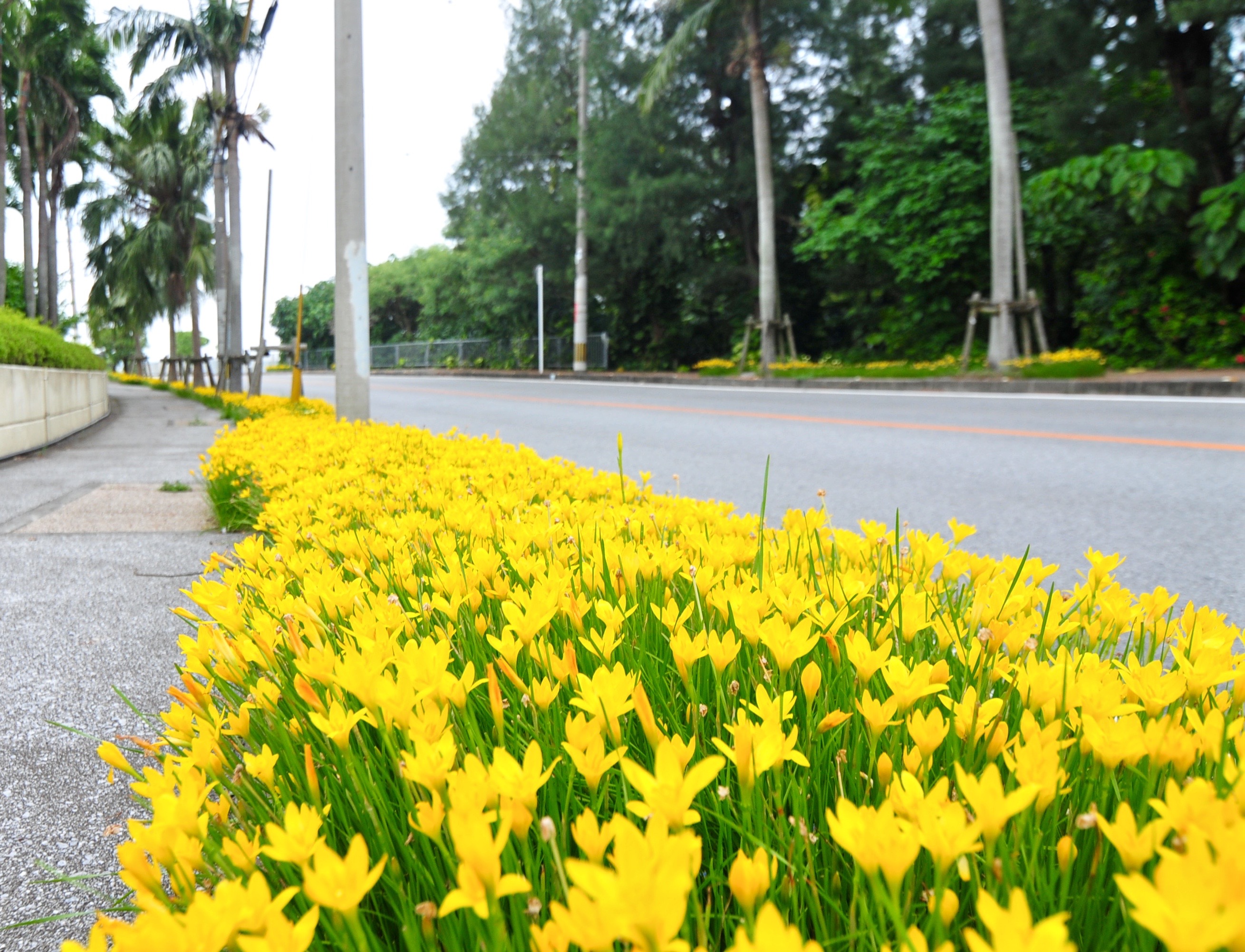 I find an amazing graffiti. It is yellow with a sun like theme.