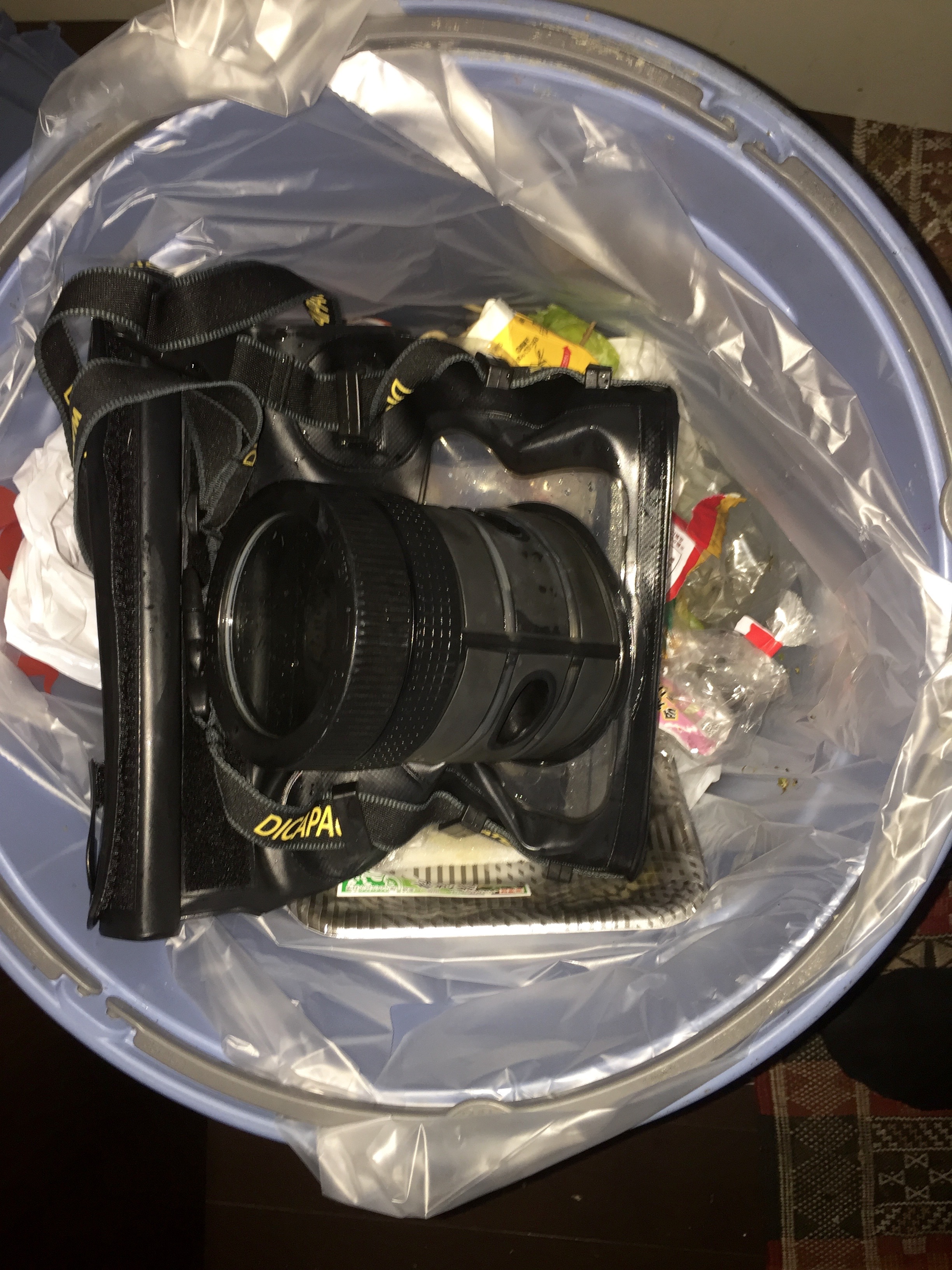 At home I open the camera bag. It is full of sea water. My beautiful camera has died.