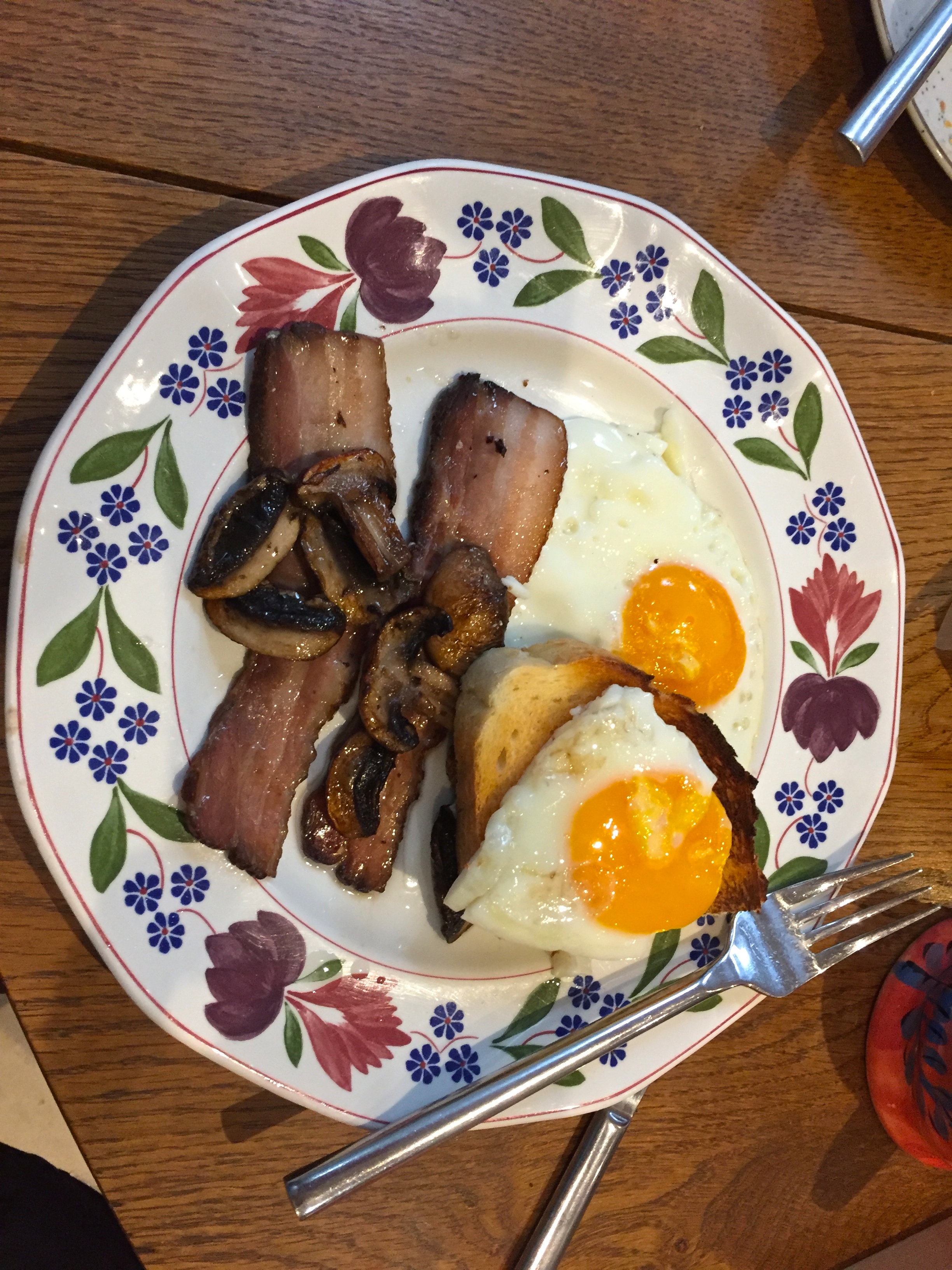 I go to England. The first day I stay with Ian and Anne. Conveniently Rosy and Barry are also staying. We have breakfast.