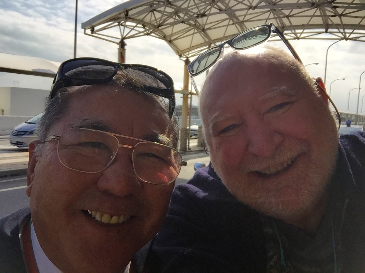 Off we go. I feel a little miffed asI will get to the airport far too early. Kinjo San puts on his shades as it is a beautiful, sunny morning. This prompts me to realize that I have forgotten my glasses, both light and dark. We are 15 minutes from the house so we turn around and go back to fetch them.