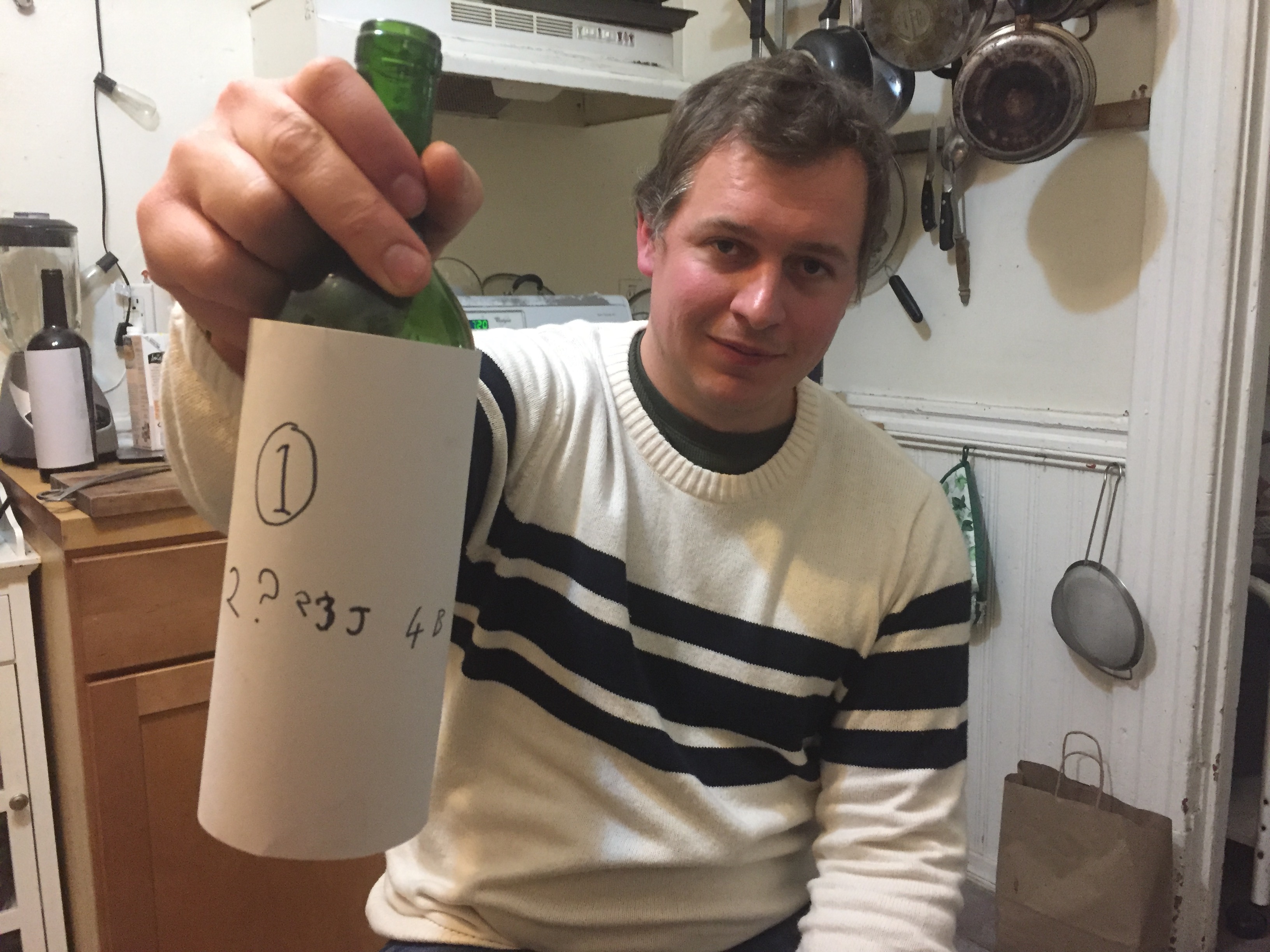 Ben buys 4 bottles of red at prices ranging from $2.99 to $34.99. He covers the bottles and we have to er guess which is the most to the least expensive. We all get it totally wrong . It is humiliating and revealing. I said that the $2.99 bottle was the second best.