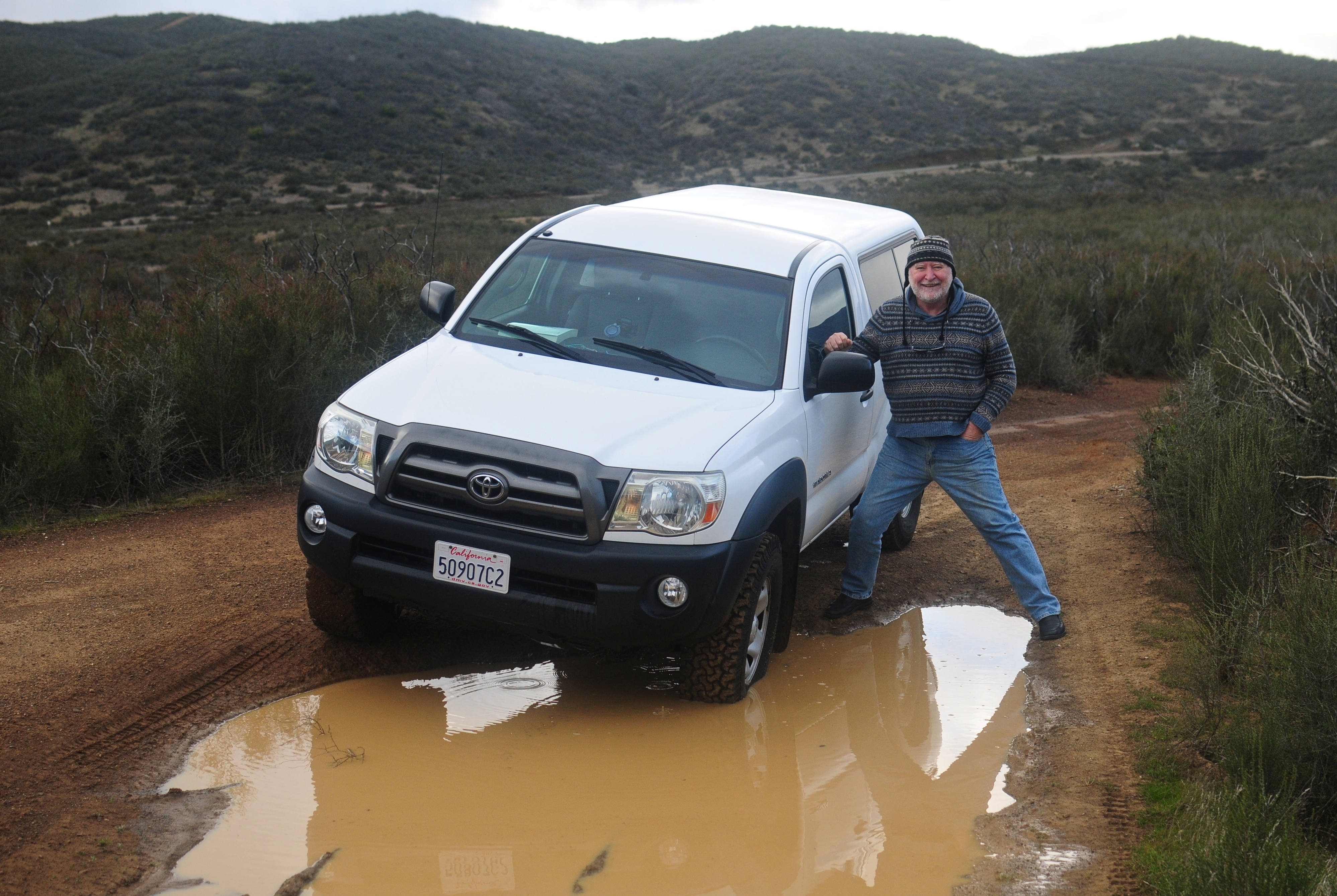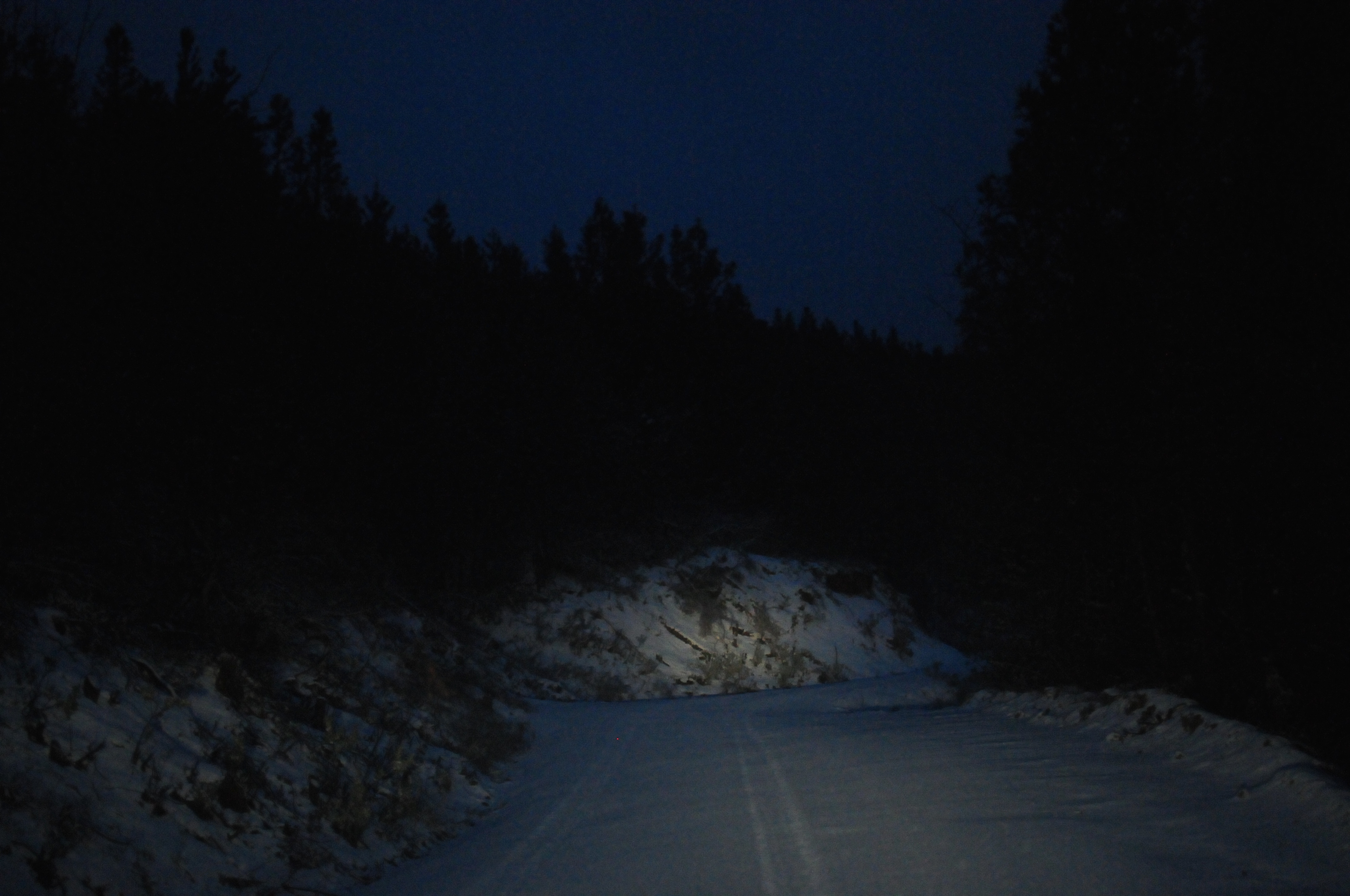 It is in fact getting dark and the road starts climbing towards some high mountain ridges. It starts to snow heavily and an overall impression of, we are lost on the side of a high mountain in California in deep snow, settles in. Are we downhearted? No! By this time the Tacoma has established her credentials as the sort of truck we like by coolly pounding her way up the mountain.