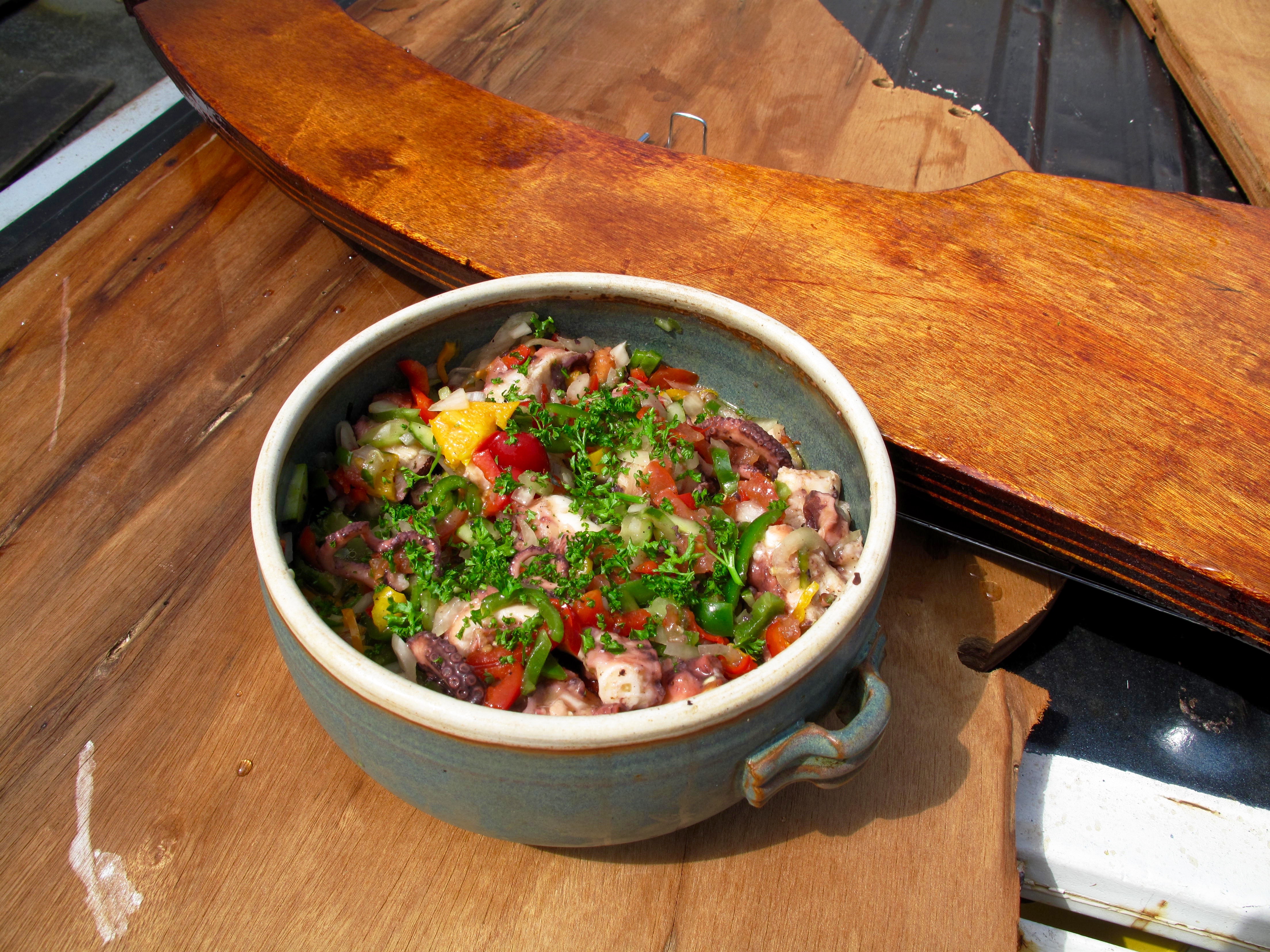 Anyway, it is the most beautiful day as I mix the magic lotion and smear it over the rudder with a sashimi tray, which does the job very well.