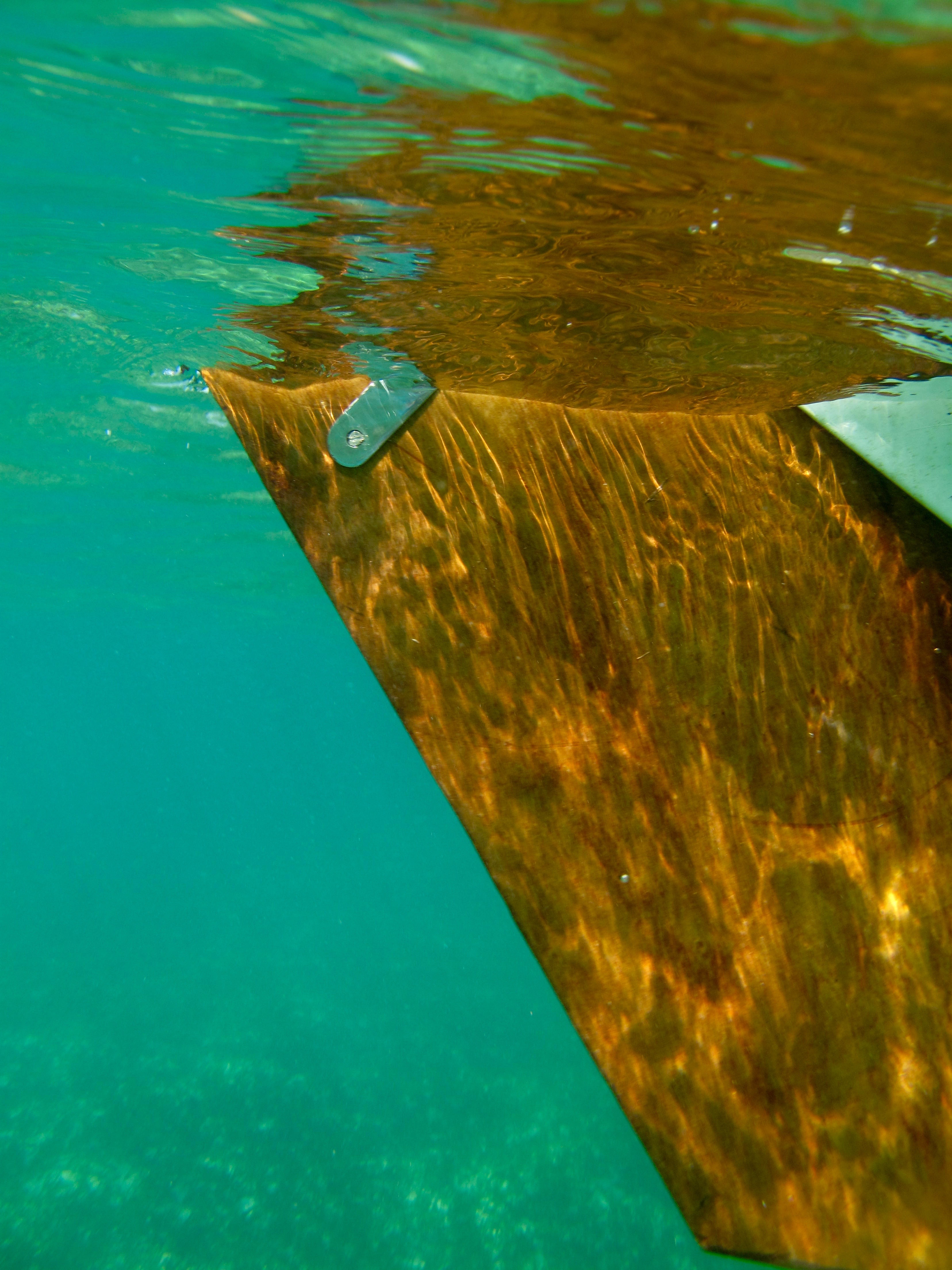 I sail home. The new high rise traveller makes a big difference. The sail is much higher and so I believe more efficient, but what has  really changed is that I can see below it. Previously the sail blocked all reality to leeward but now I can see all kinds of amazing stuff. The new rudder works just fine.