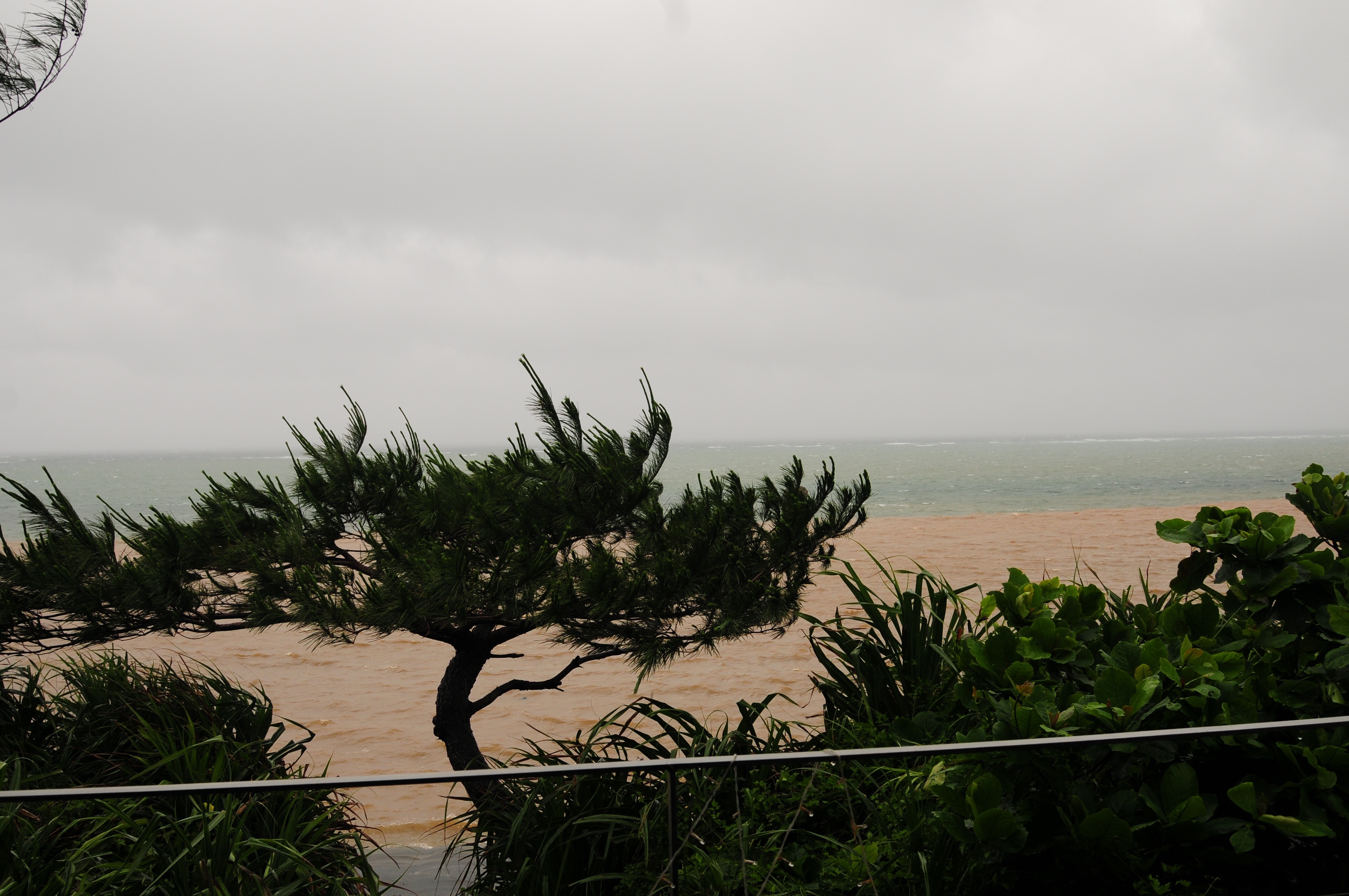 They then send me the great test. The sea is very rough. The rain has filled the boat with water thus making her very heavy and more likely to drag her anchors. If she does she will end up on the shore, her rudder will disappear and I will be back to square one. I feel terrible and posses a plentiful fever. The wind is very high and it is lashing down with rain. But there is nothing for it really. I put on a Vermont hunting jacket and a sou’wester, neither of which I have previously worn in Okinawa, and wade out in the howling storm.