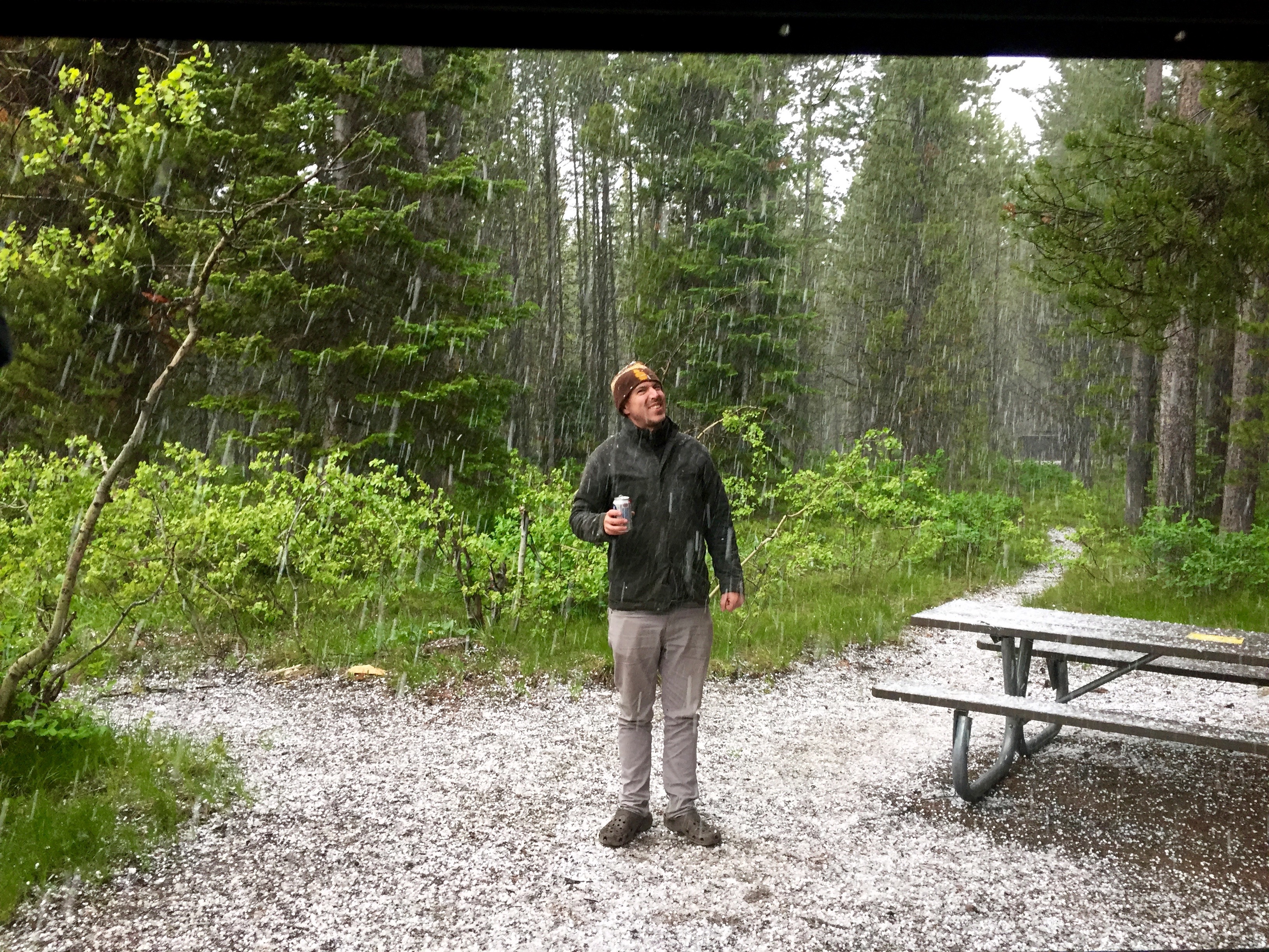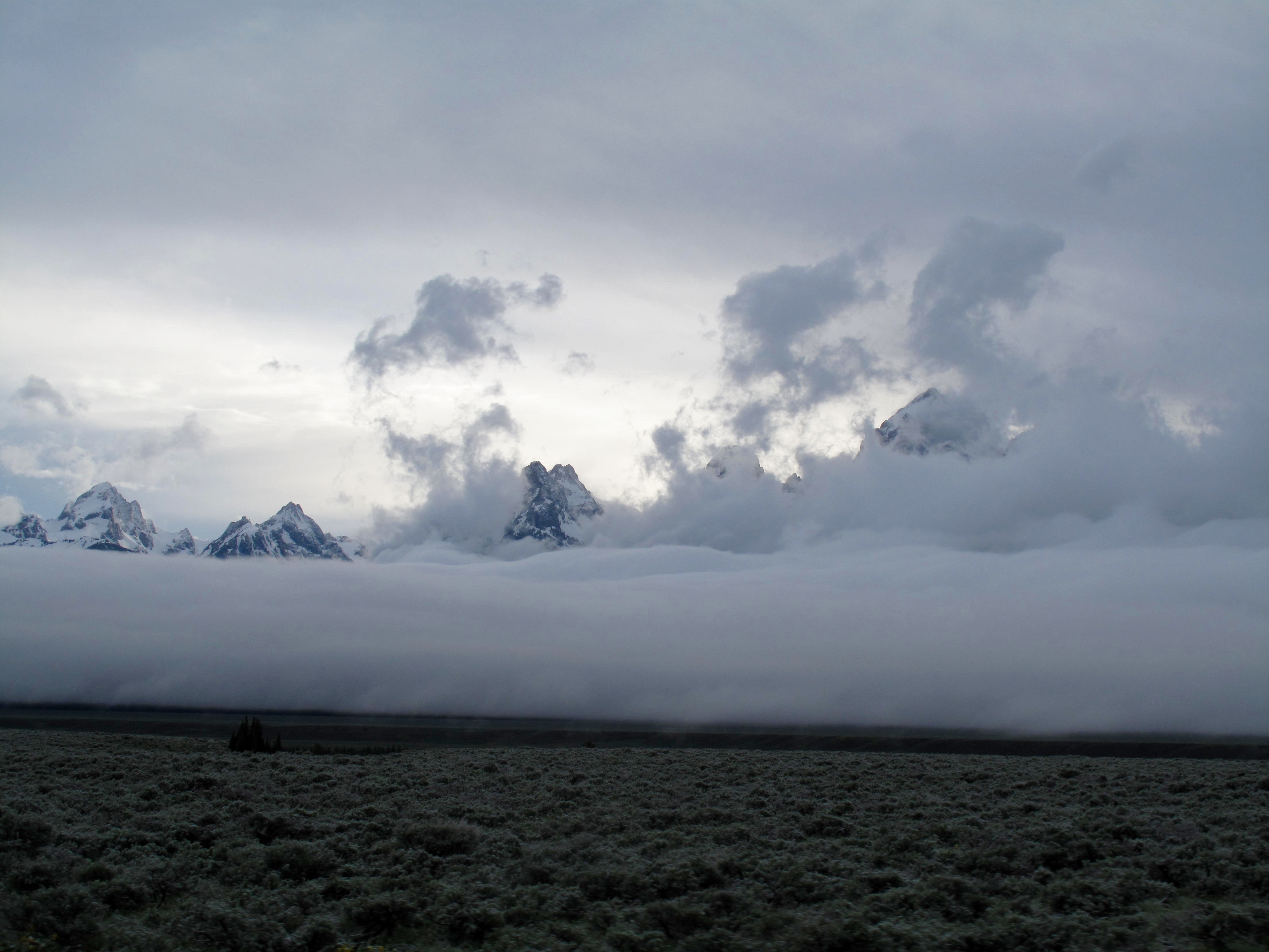 Grand Teton National Park was where we were headed. We intended to watch Bear, Elk, Caribou, Elk and such. We were also determined to camp. Grand Teton was actually a big disappointment for after 1000 miles or so on back roads, it it is very civilized with gas stations, stores, lodges and loads of people. The weather turned really bad and we could not see the famous big breasts. We tried very hard to camp.