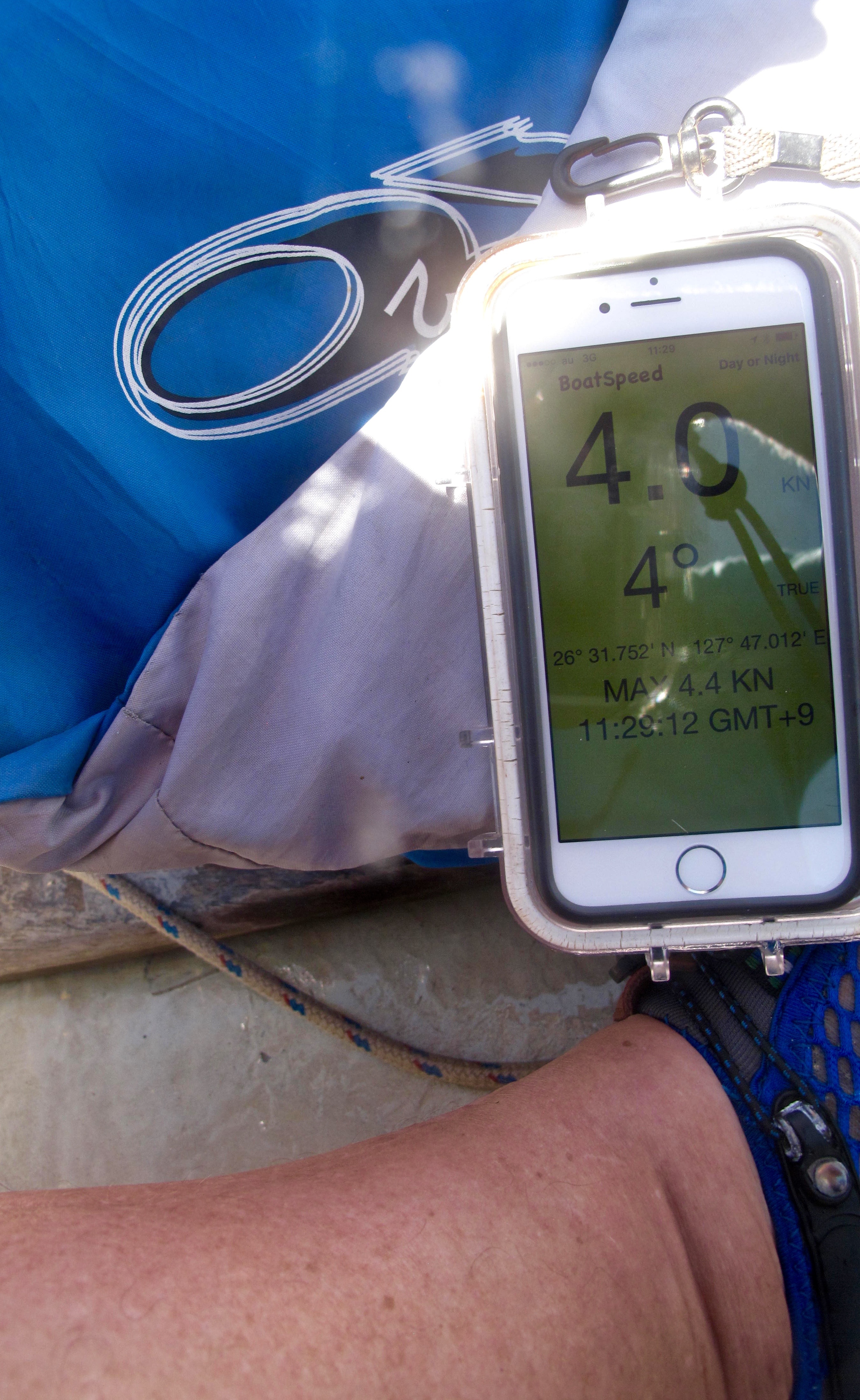 I get back to Maeda by 10:00 but I am 4 or 5 miles out to sea and now have to beat against the wind to get home. This takes another 4 hours! I have a motor but it seems cowardly to use it. The Coastguards actually pass by to see if I am all right. They have clearly seen me tacking back and forth without making any progress. They hail me with “Good morning, Captain.” This makes me feel good.