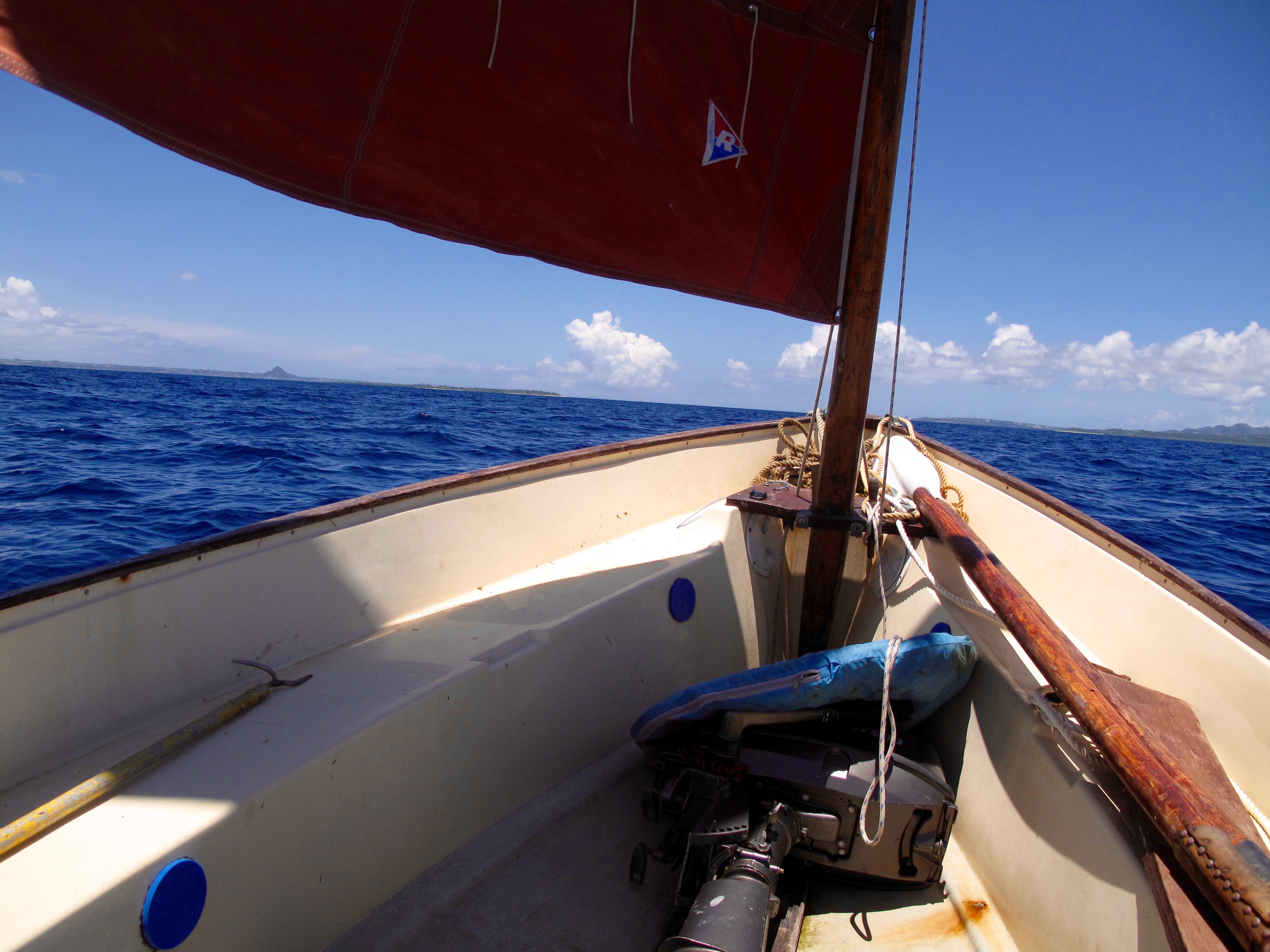 The Scaffie loves a long sail and so do I. Minna Jima is about 30 kms from my house. With a fine breeze on the starboard beam we go along very nicely at around 4 knots.