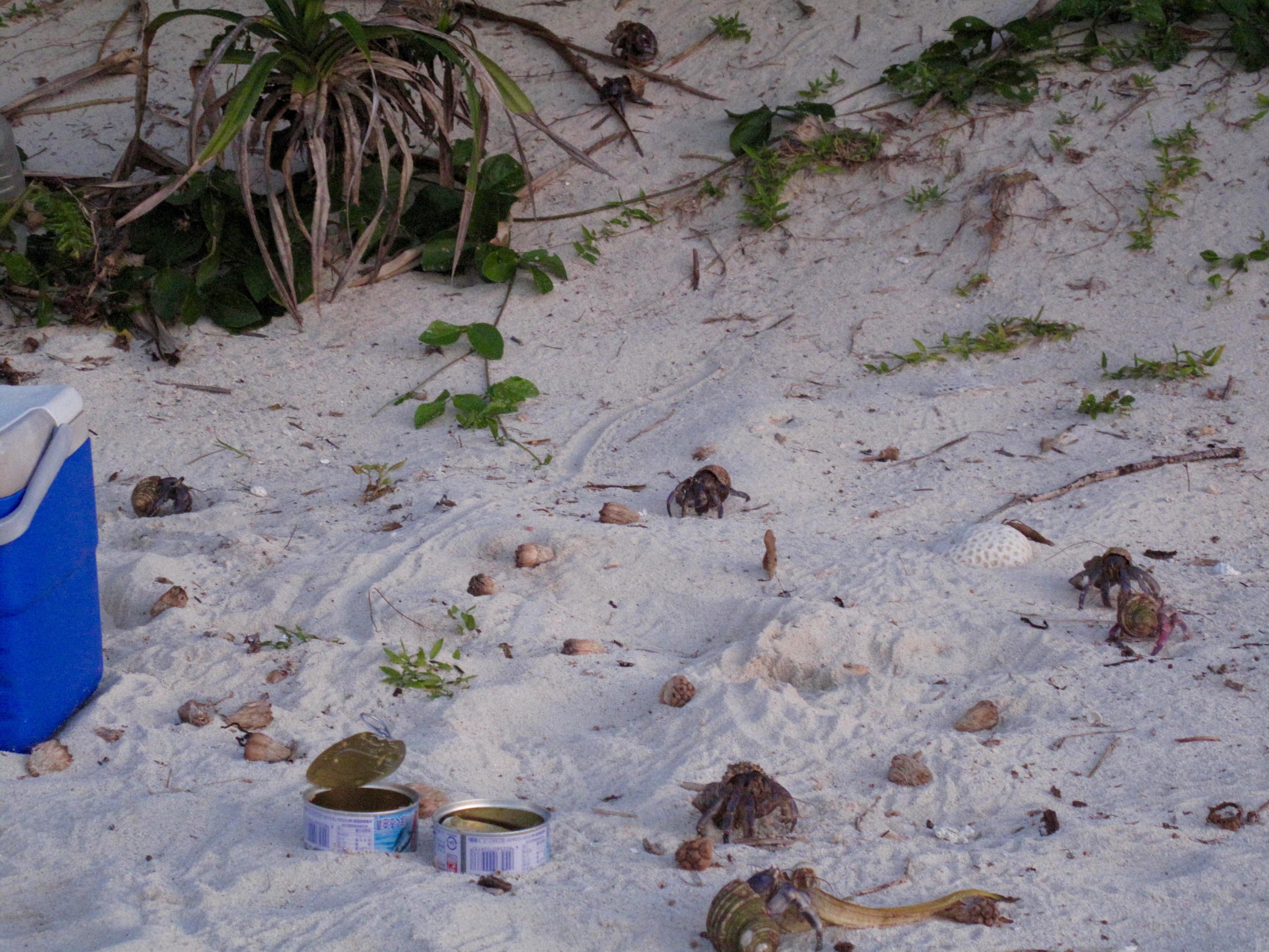 I wander off to the next beach from the harbor to set up camp. I snorkel and see a huge octopus.