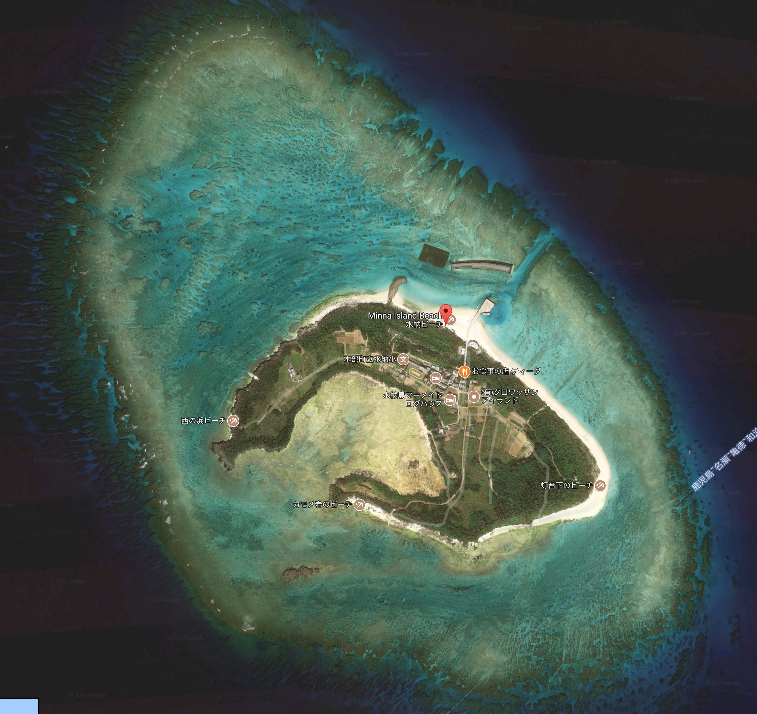 Minna Jima comes into view. It is the low lying one in the foreground. You have to click on these photos.