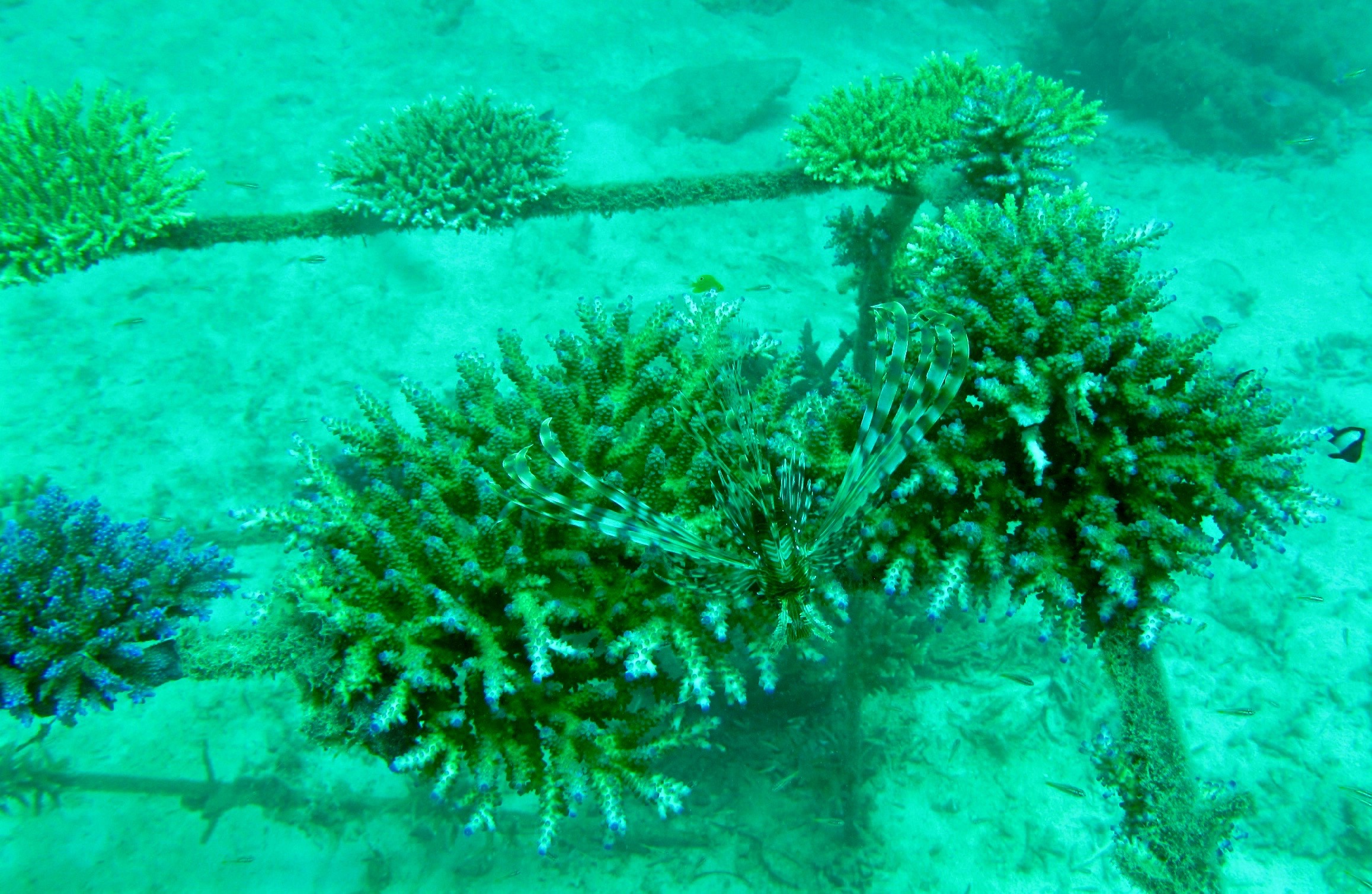 I sail out to the diving place just in front of my house. This place is celebrated for having lots of coral replanting projects, tons of Bat Fish and many different species of Clown Fish. It was a sad dive.