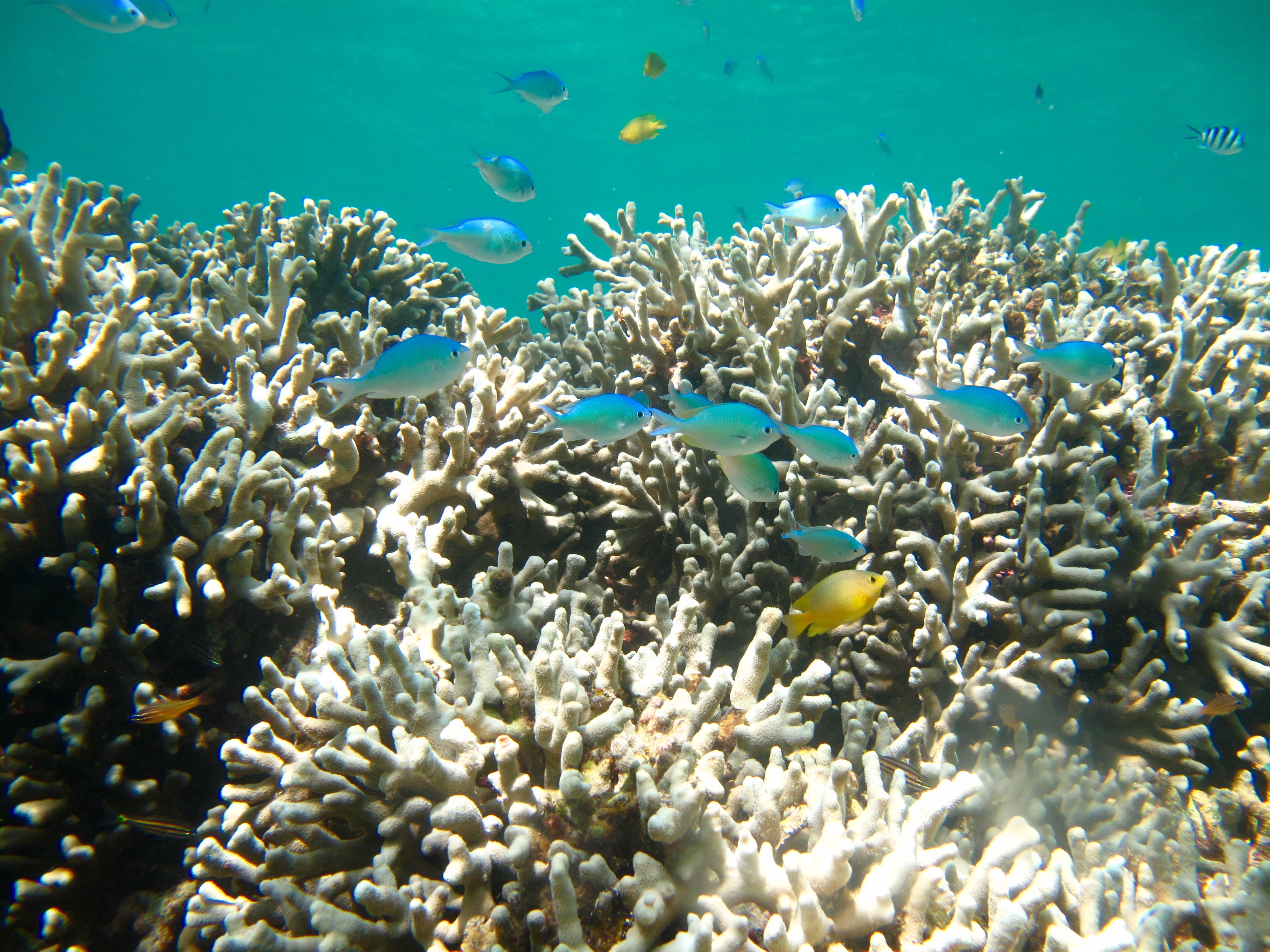 The water is incredibly warm. I can feel it boiling the coral. Last year, there were elaborate structures with different coral species, which seemed to be prospering.