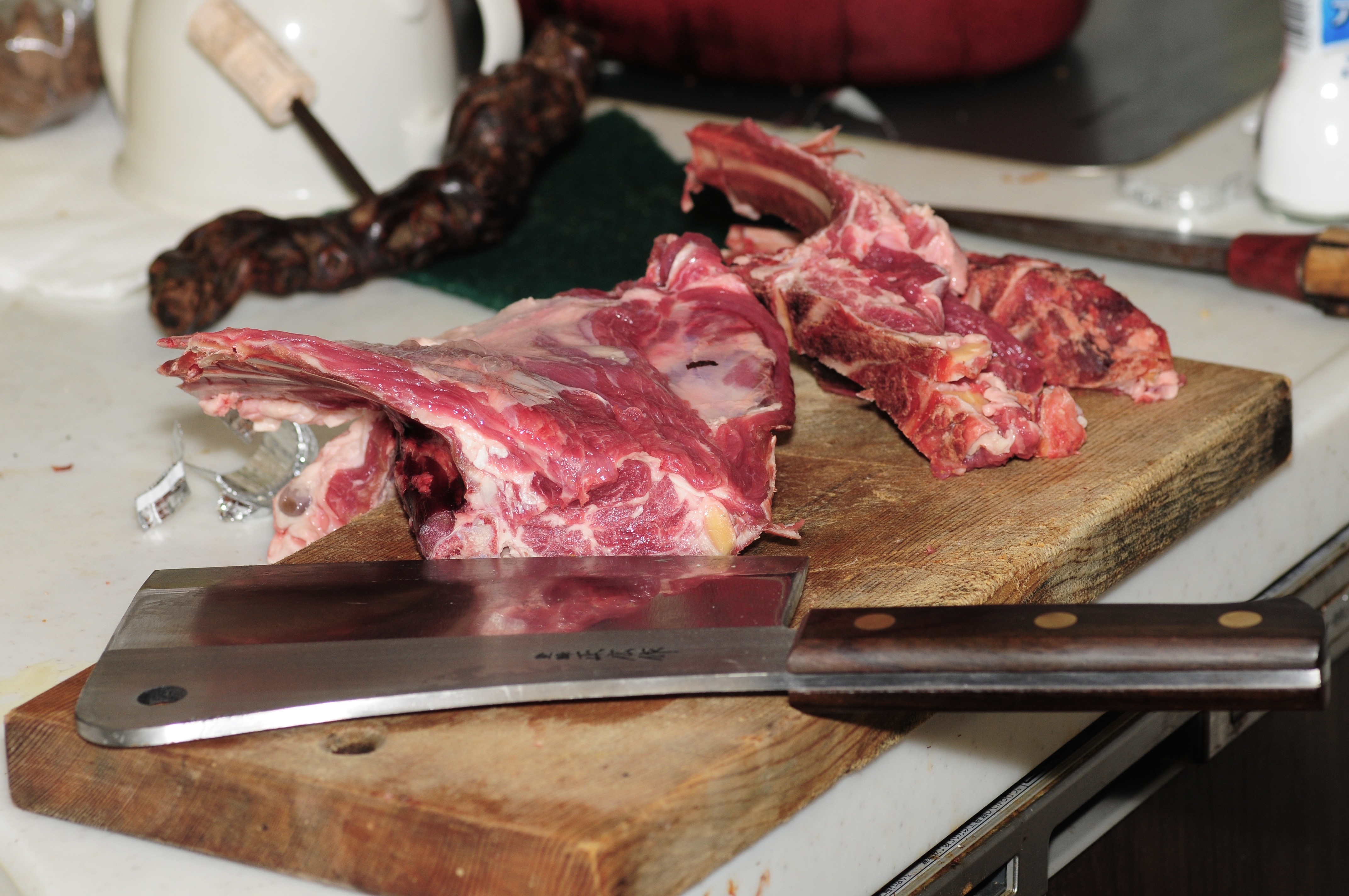 To change the subject somewhat, I would like to let you know that my most recent delivery of lamb has a lot of side pieces. These are slabs of ribcage that lead up to the much to be desired lamb chops. They need butchering. Each dainty lamb chop has to be er chopped off the continent. I have struggled with this and have often yearned for a cleaver.