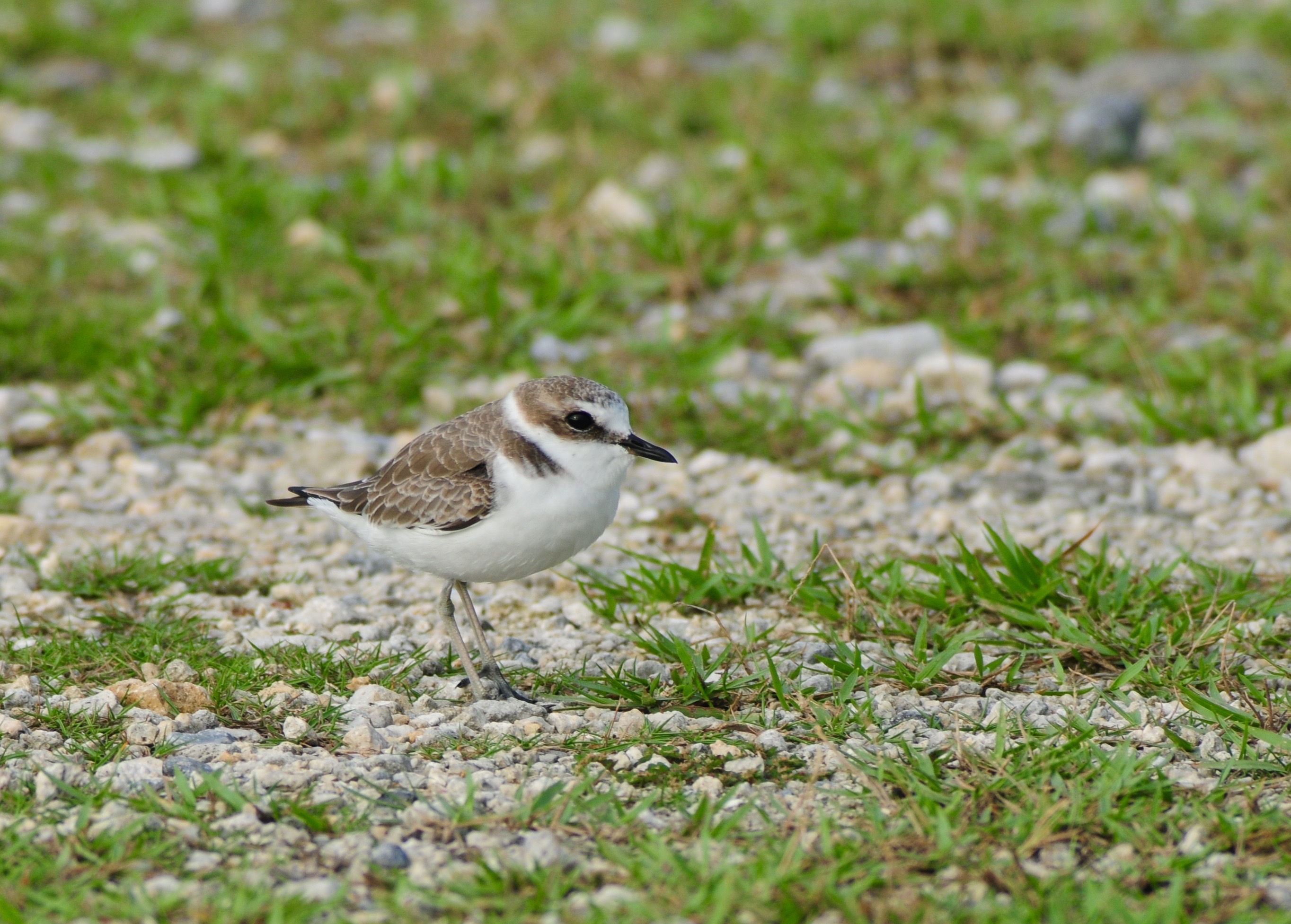 The bad weather has driven birds to shelter and a field nearby is sputtered with plovers.