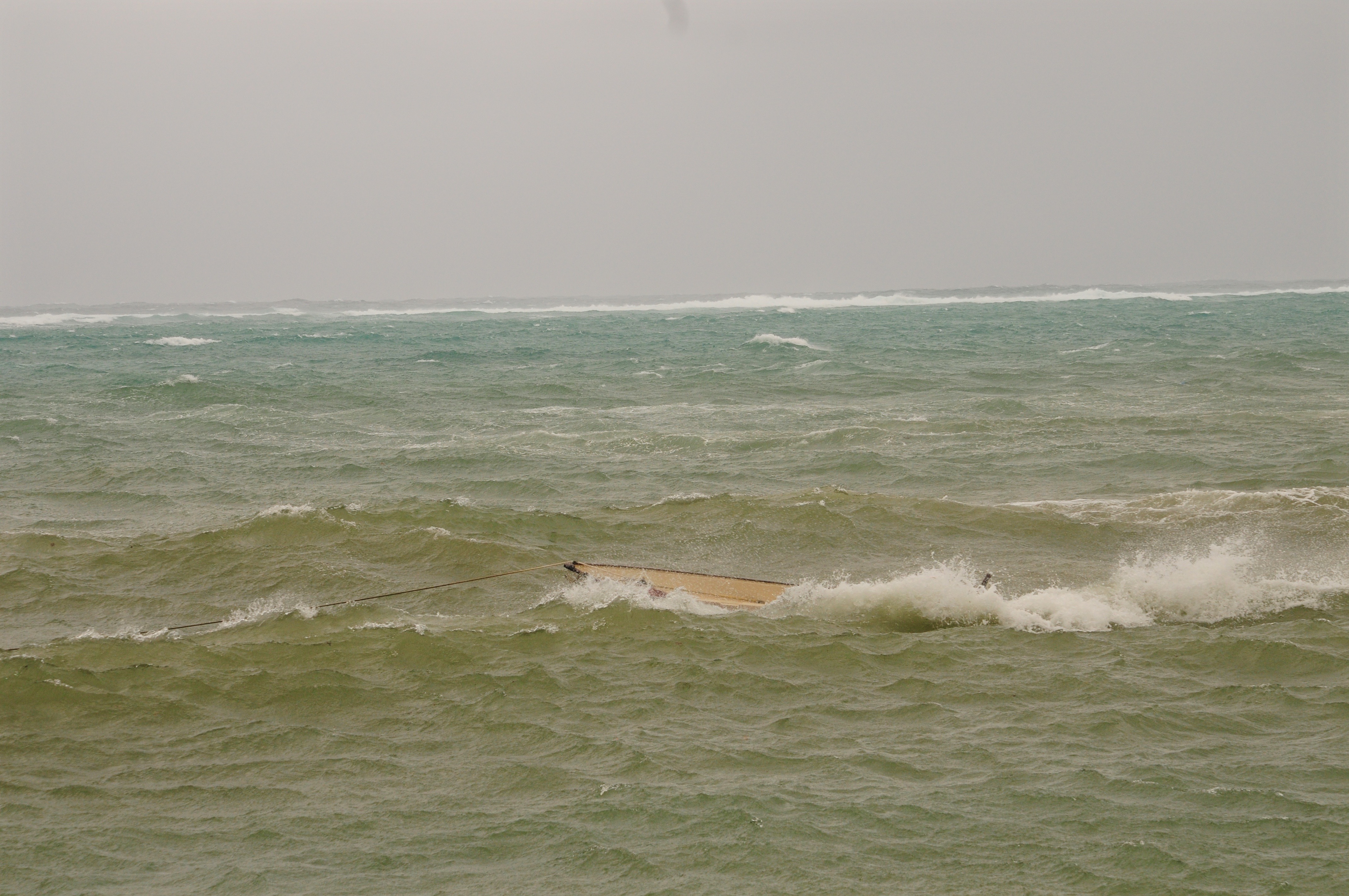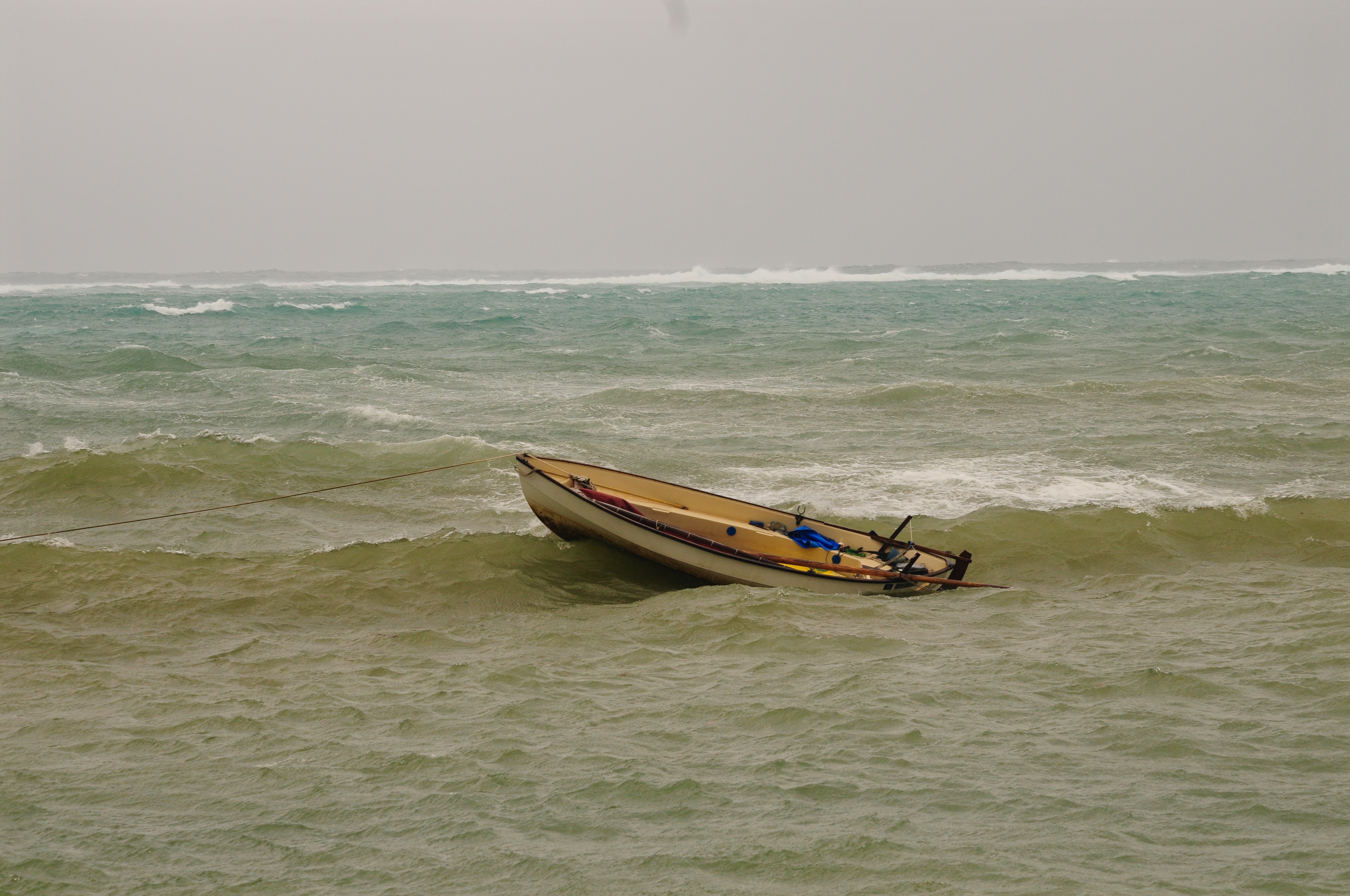 So, what can I do? The anchor is dragging. I measure the progress by laying markers along the seafront. I am too scared to go into the sea to reset the anchors. The tide is super high and I fear I will drown if I go out there.