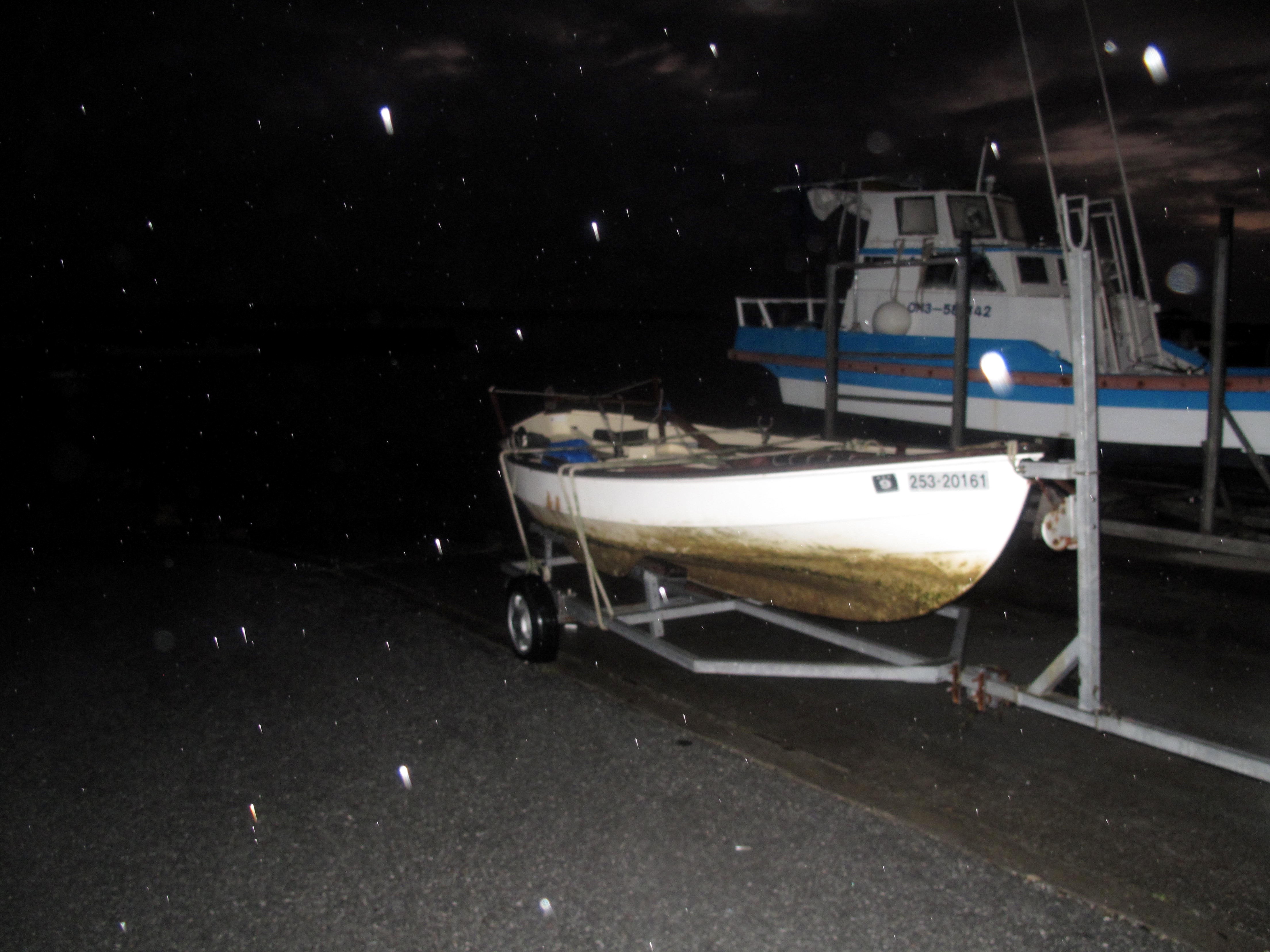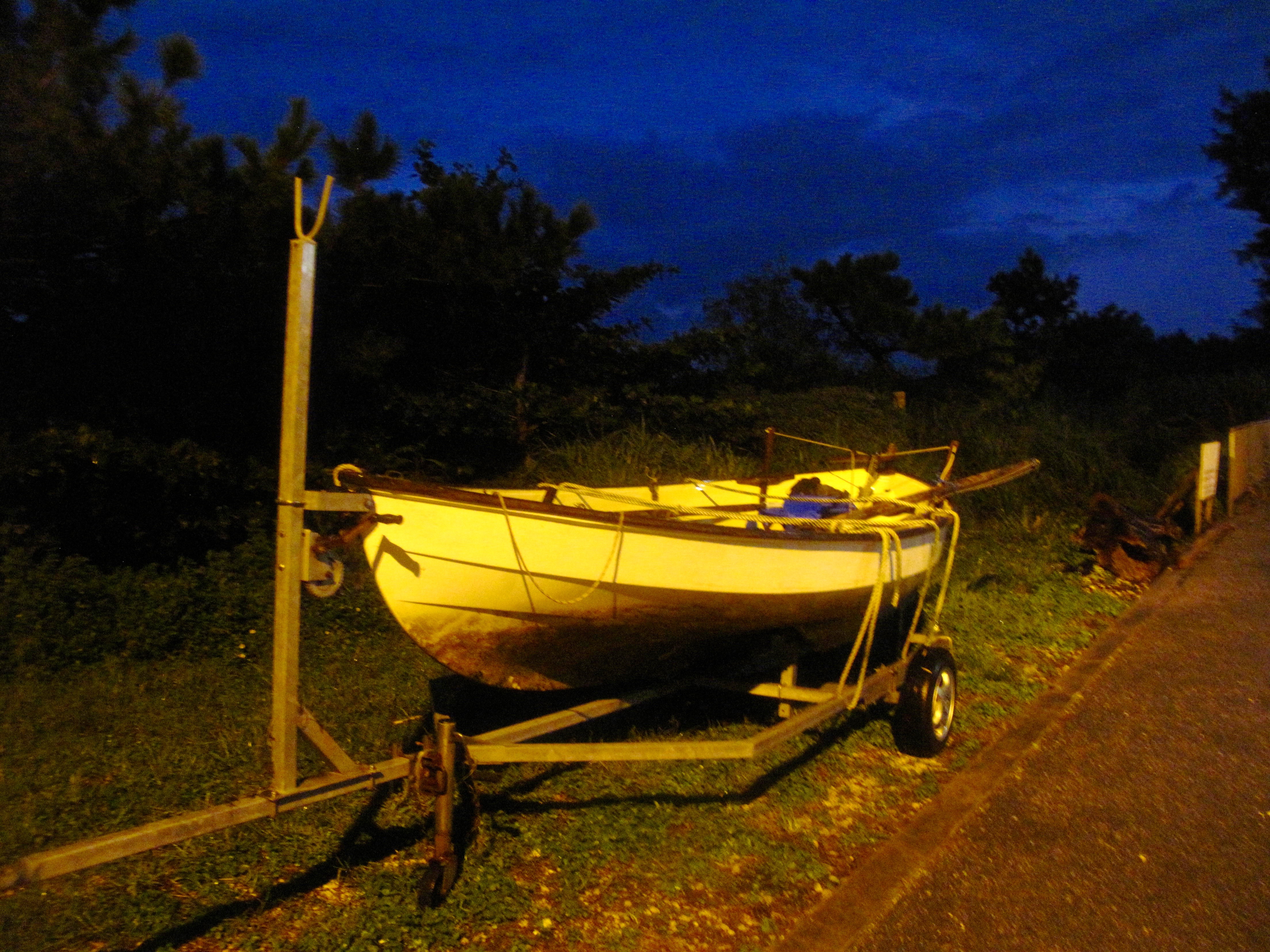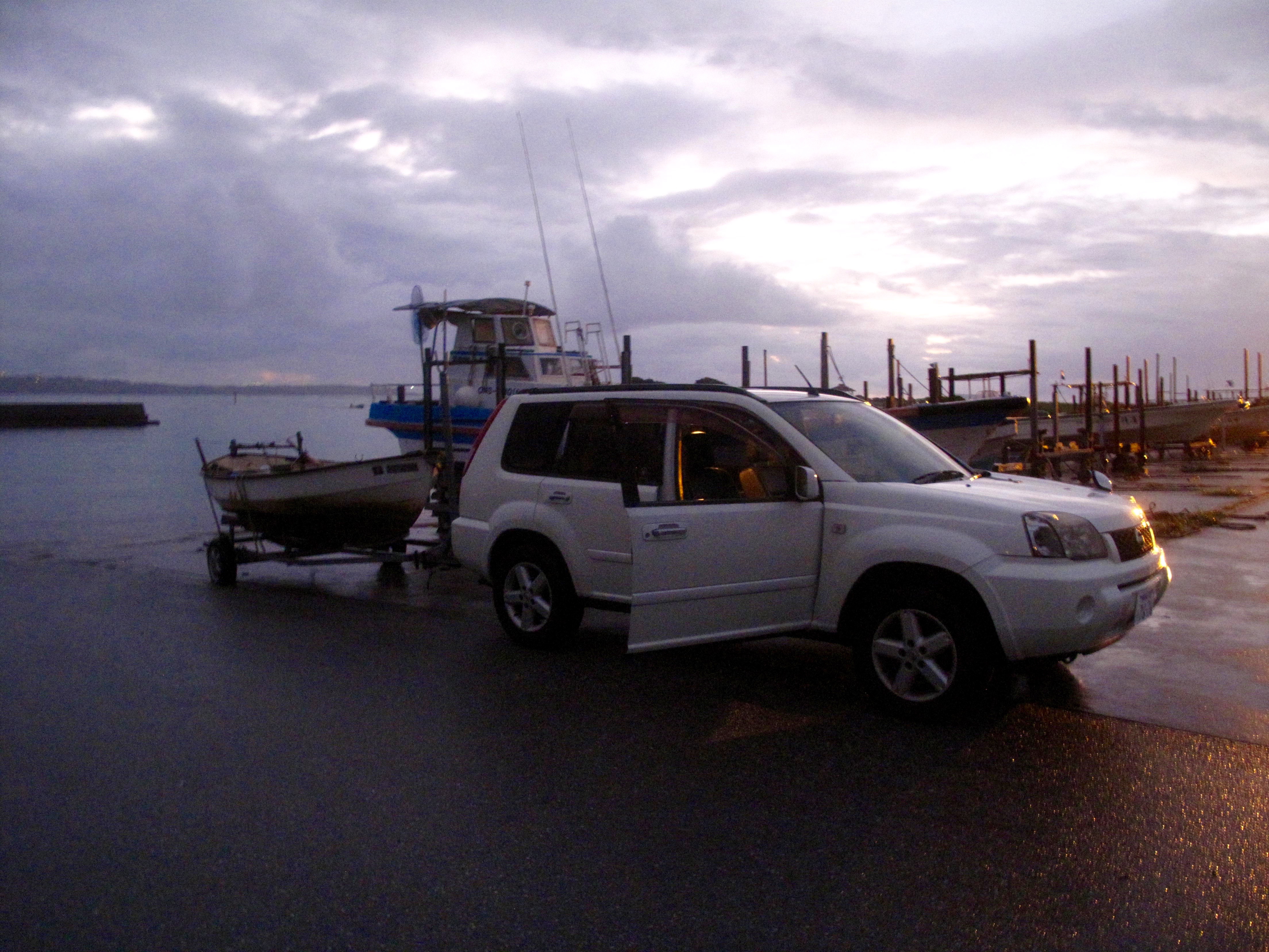 Then comes one of those hinge moments in life. I have to lift the trailer and reposing boat onto the towing attachment on the back of the Xtrail. It is getting very dark and is pouring with rain. If I fail, the boat is left stranded at Chioya until I can find some real men to help me. I bend down and grasp the trailer. It is very heavy. I bend my knees and push my huge bulk upwards and to my joy, the boat and trailer also rise allowing me to clatter her onto the towing clamp thing. Life affirming.