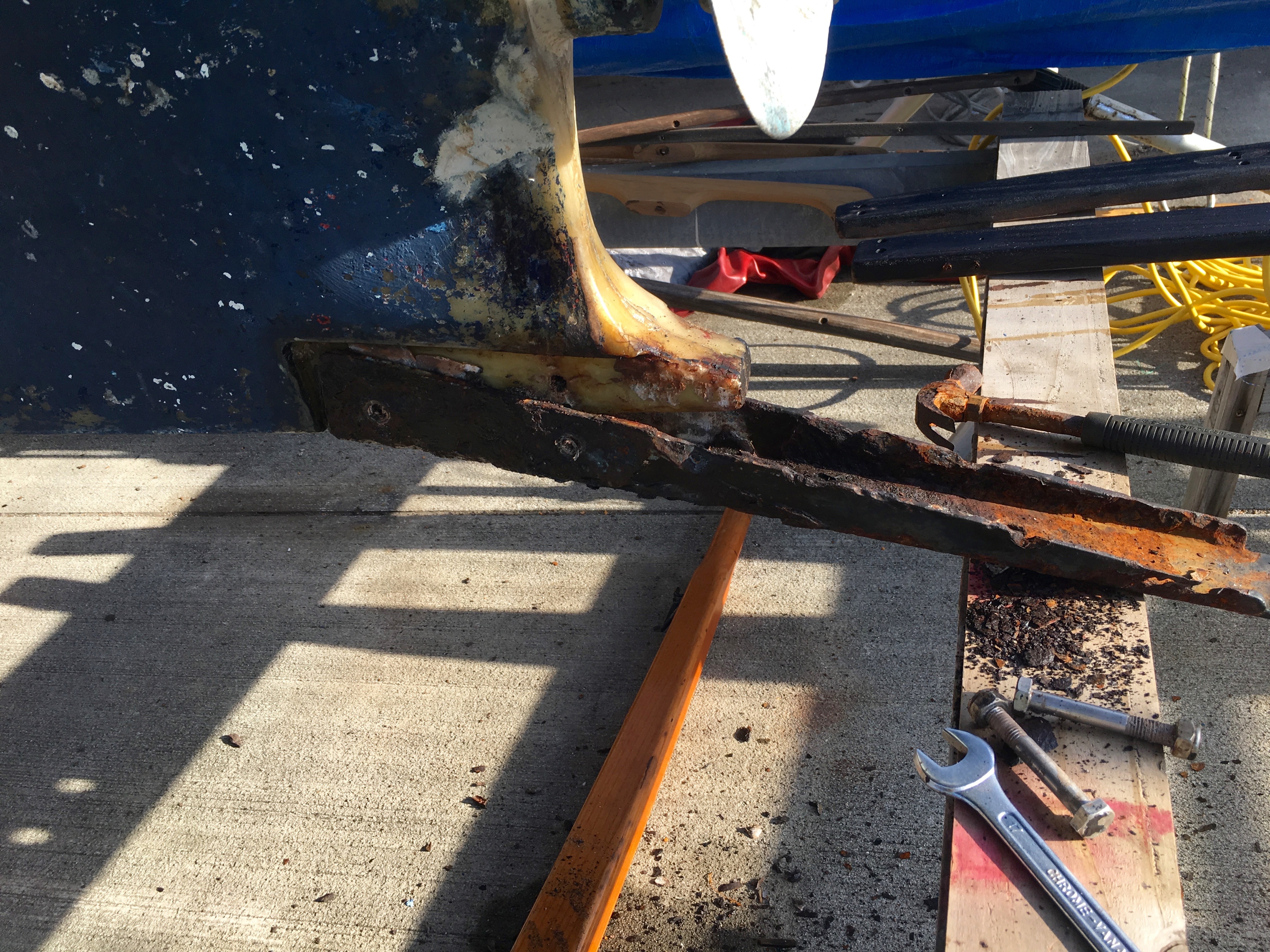I also have success with the skag. This is a piece of metal that essentially protects the propeller. My skag is very heavily corroded and I worry that it will be a pain to remove, However the retaining bolts loosen easily and a bit of hammering and levering and the skag starts to move.