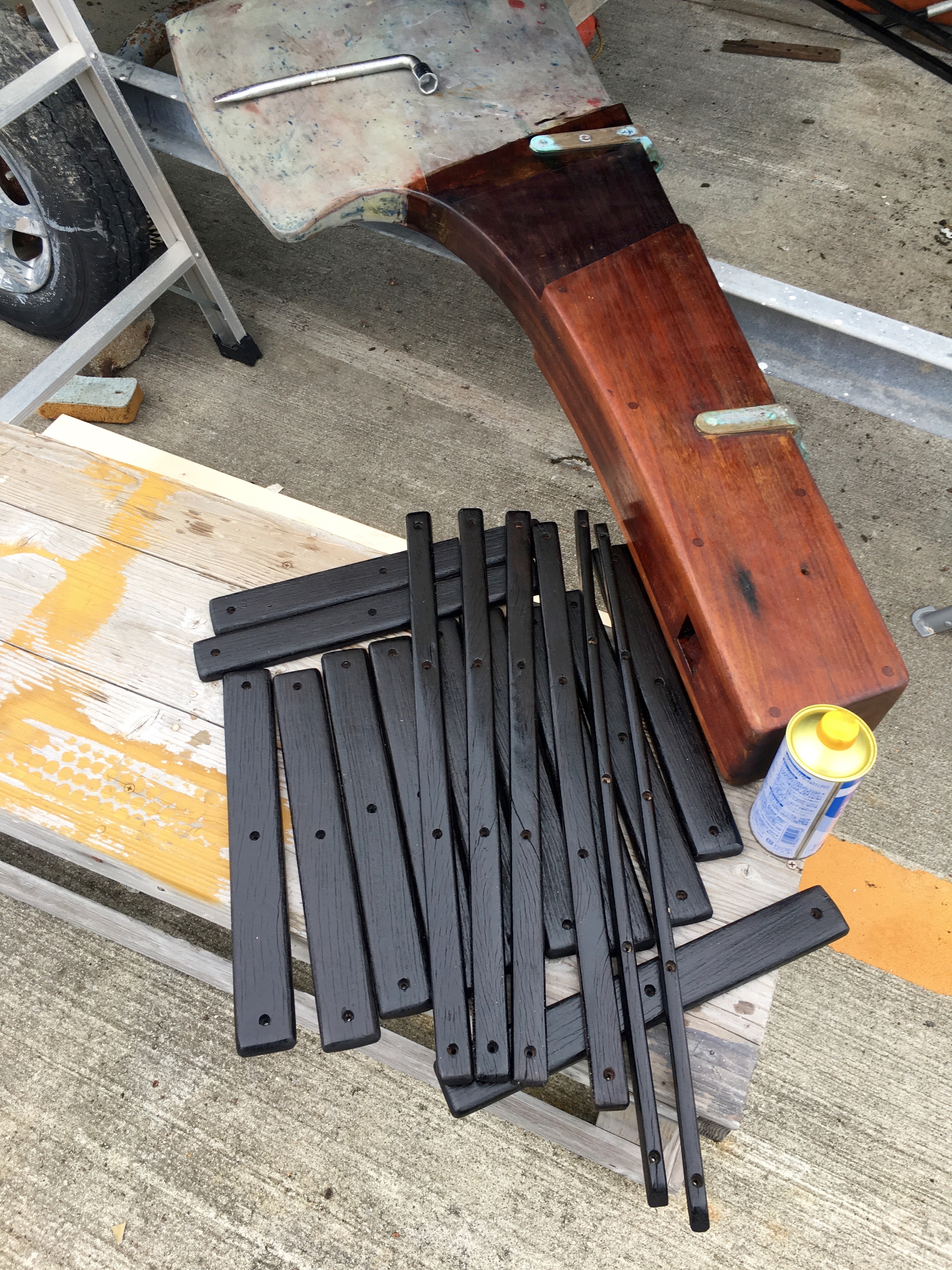 I also rebuild the floorboard thing for the cockpit. Many planks were broken, so these I replaced with new wood. Somehow all the screws had become loose, which I attribute to wood shrinkage due to intense sun exposure. I tighten and drench everything in wood treatment stuff.