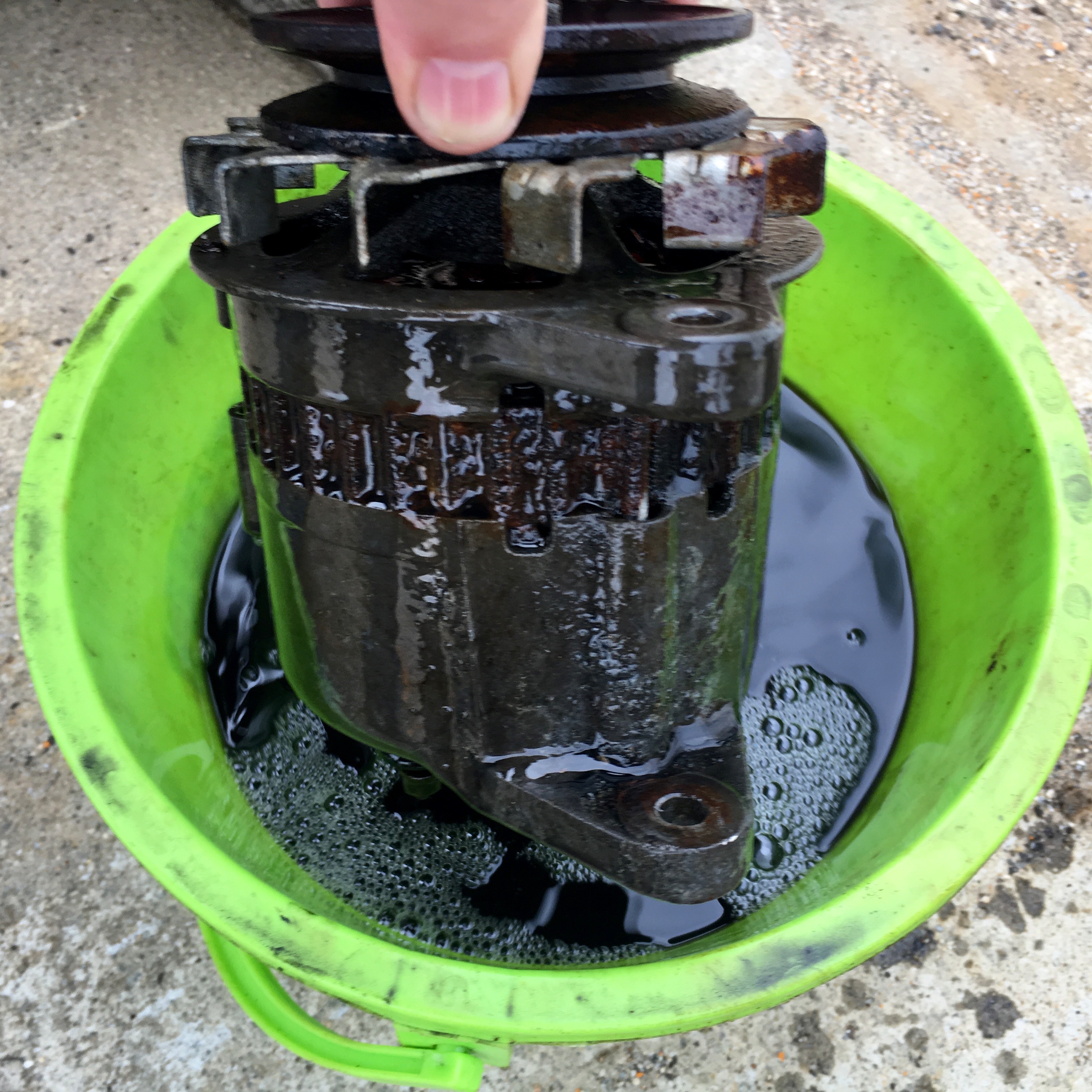 Starter motor, whose death I had taken for granted. He has been soaking it in magic potion for a week and seems confident of resurrection.