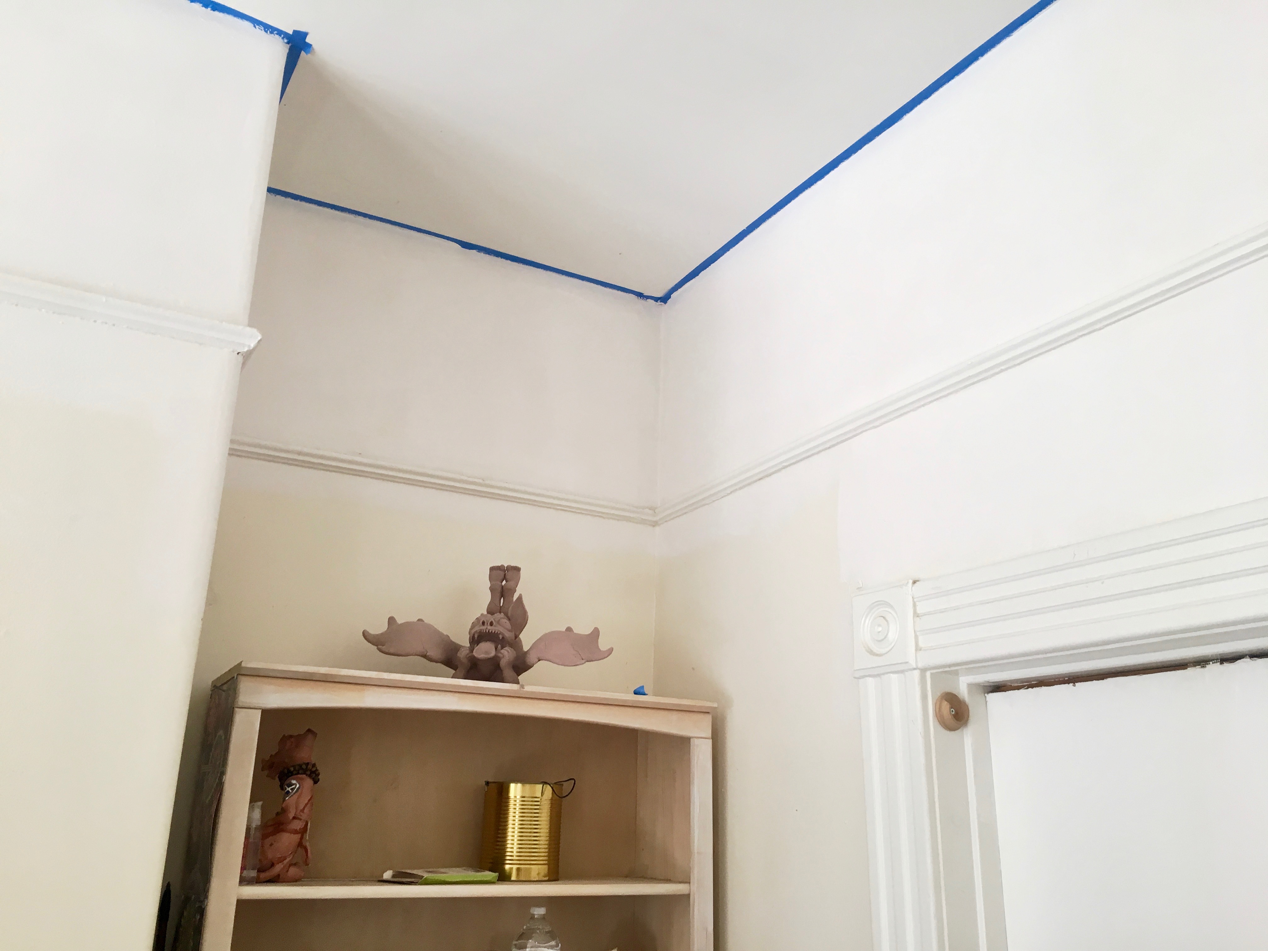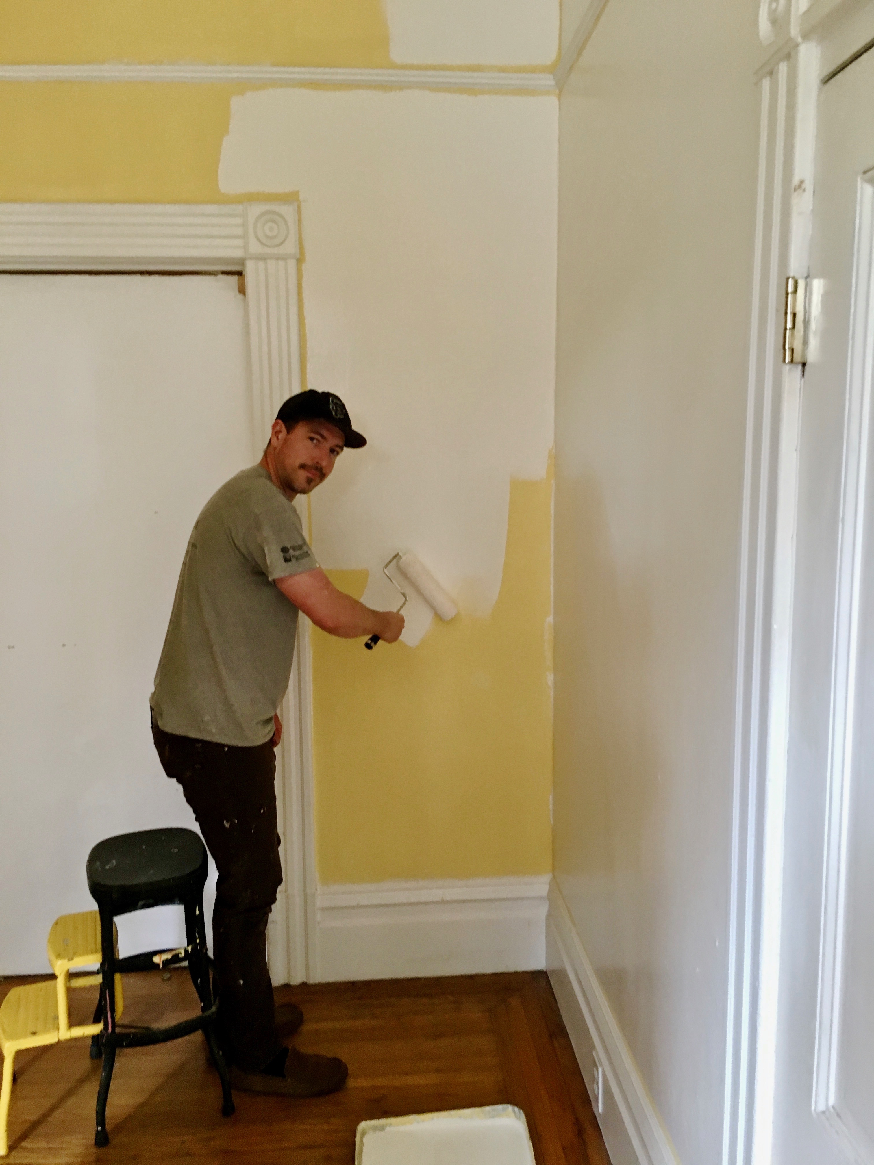 Third repainting of the room in 2 weeks. James helps. We restore it to the original color.