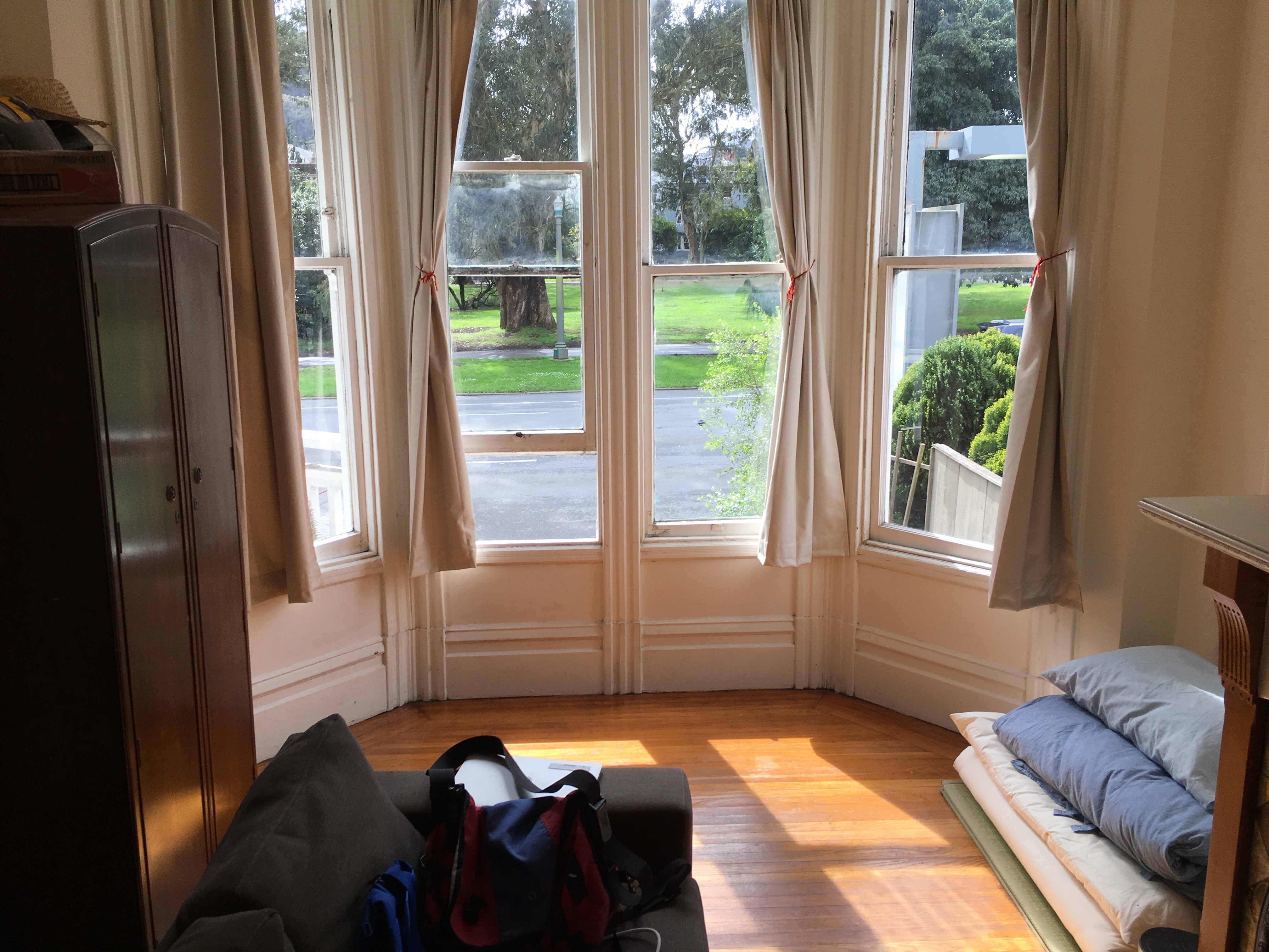 There are four bedrooms, a big kitchen, bathroom, and an outside porch that houses the washing machine, the dryer and James’ workshop. From my room I look right out onto the Panhandle. https://en.wikipedia.org/wiki/Panhandle_(San_Francisco)