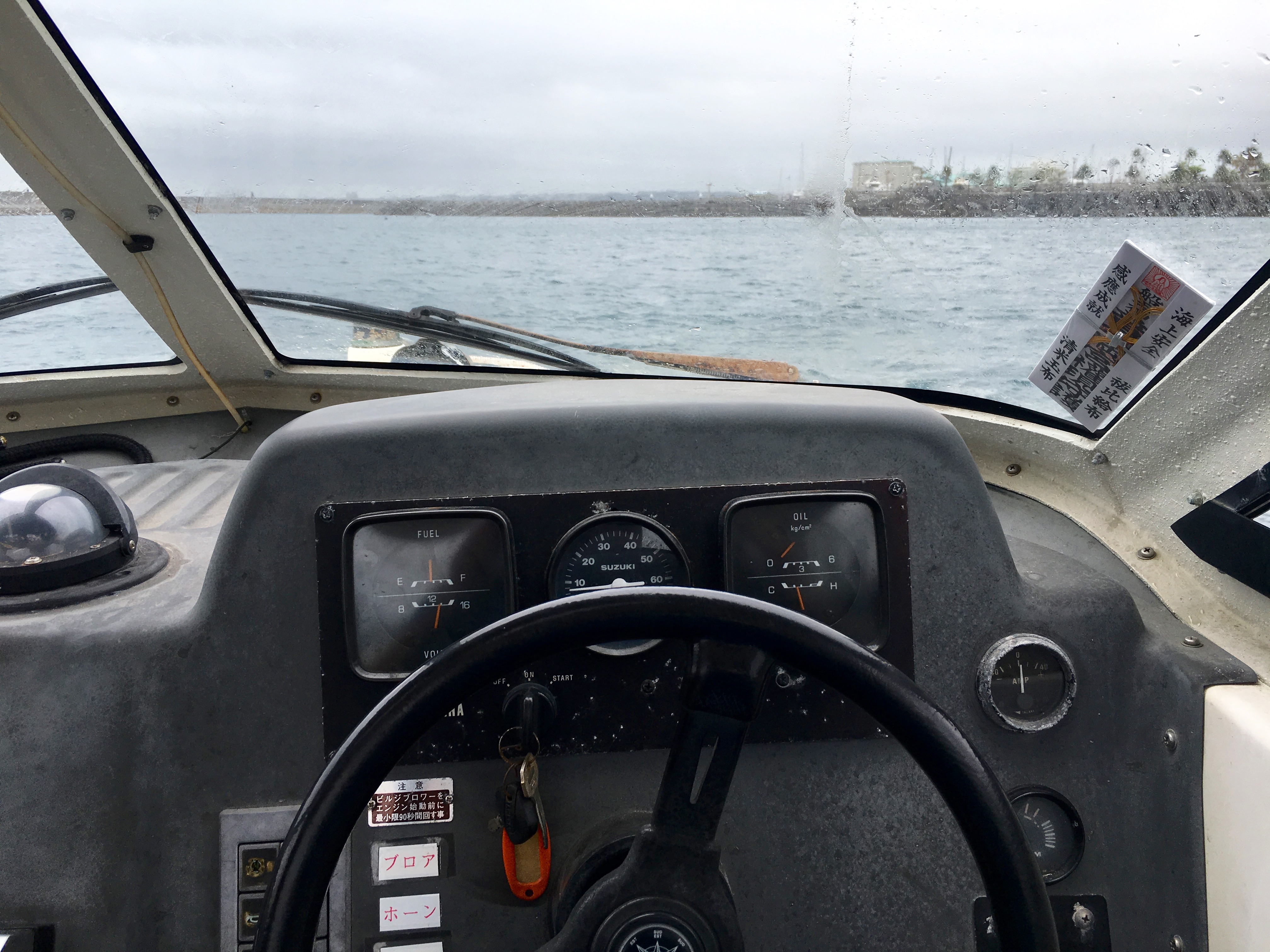 Yuta san does not speak English but impresses on me that everything must be done by the book, otherwise the inspector will fail me. We go through, engine checks, hull inspection, safety equipment checks, navigation light checks, windscreen wiper checks, which turns out to be crucial. We then do switching on the engine, not as straightforward as you would think, warming up the engine – 10 secs exactly at 1000 rpm.