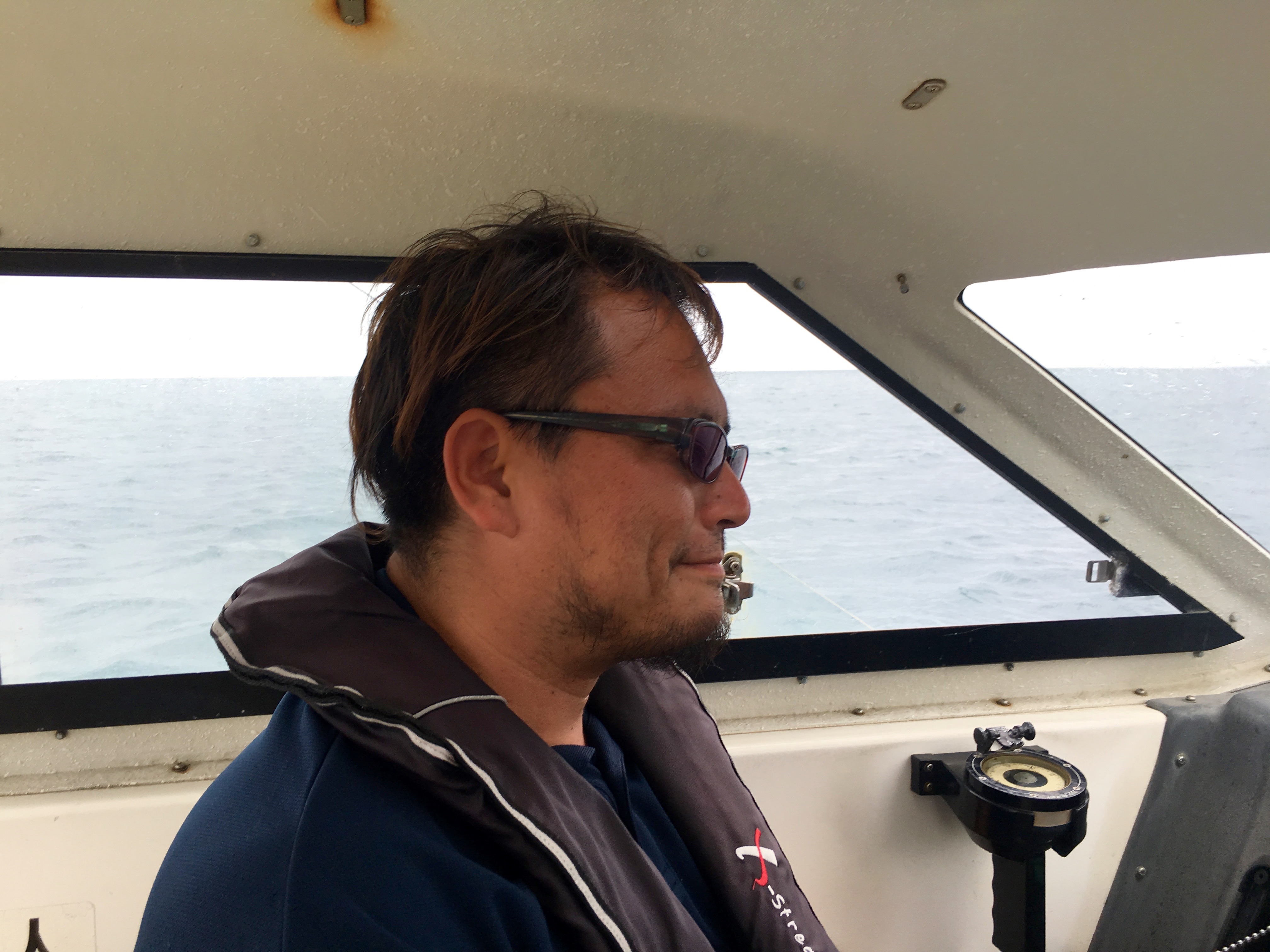 Yuta sensei beside the boat. Notice that the weather is closing in.
