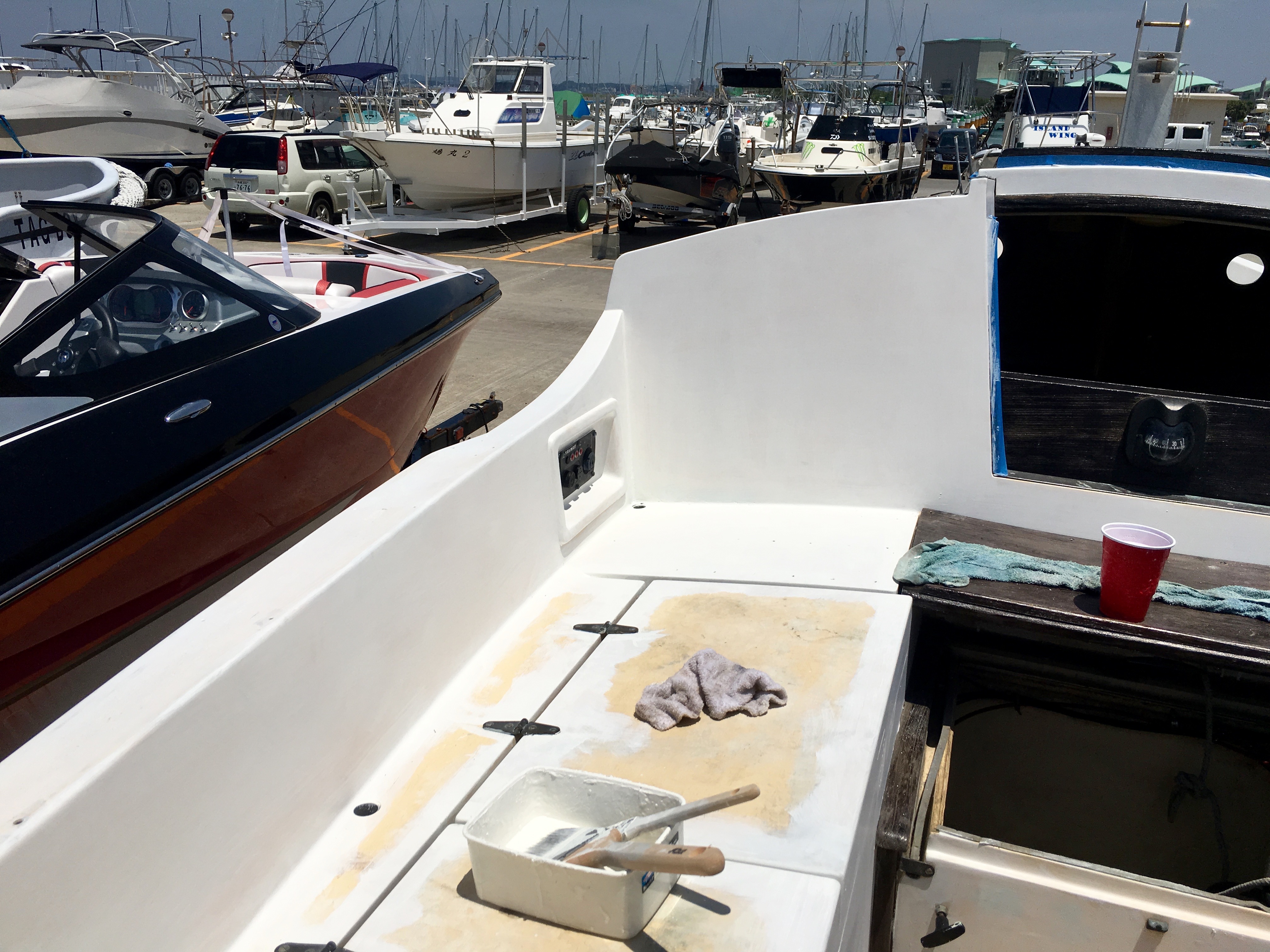 Painting boats is a manic activity as, as everybody knows, the success of a repaint is 90% due to the assiduity of the preparation. Assiduity has never been a strong point of mine. To actually lay paint brush on surface is a very difficult act. You know that you could do more – more sanding, more cleaning and above all, more silicon trace blitzing.