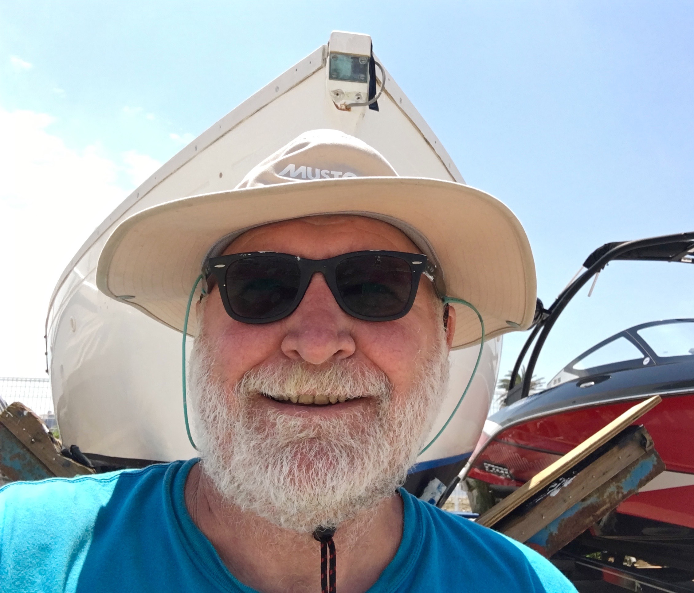 Sun is a big issue. It is now 30 degrees and after 12:00 there is no point continuing as the hull is so hot.