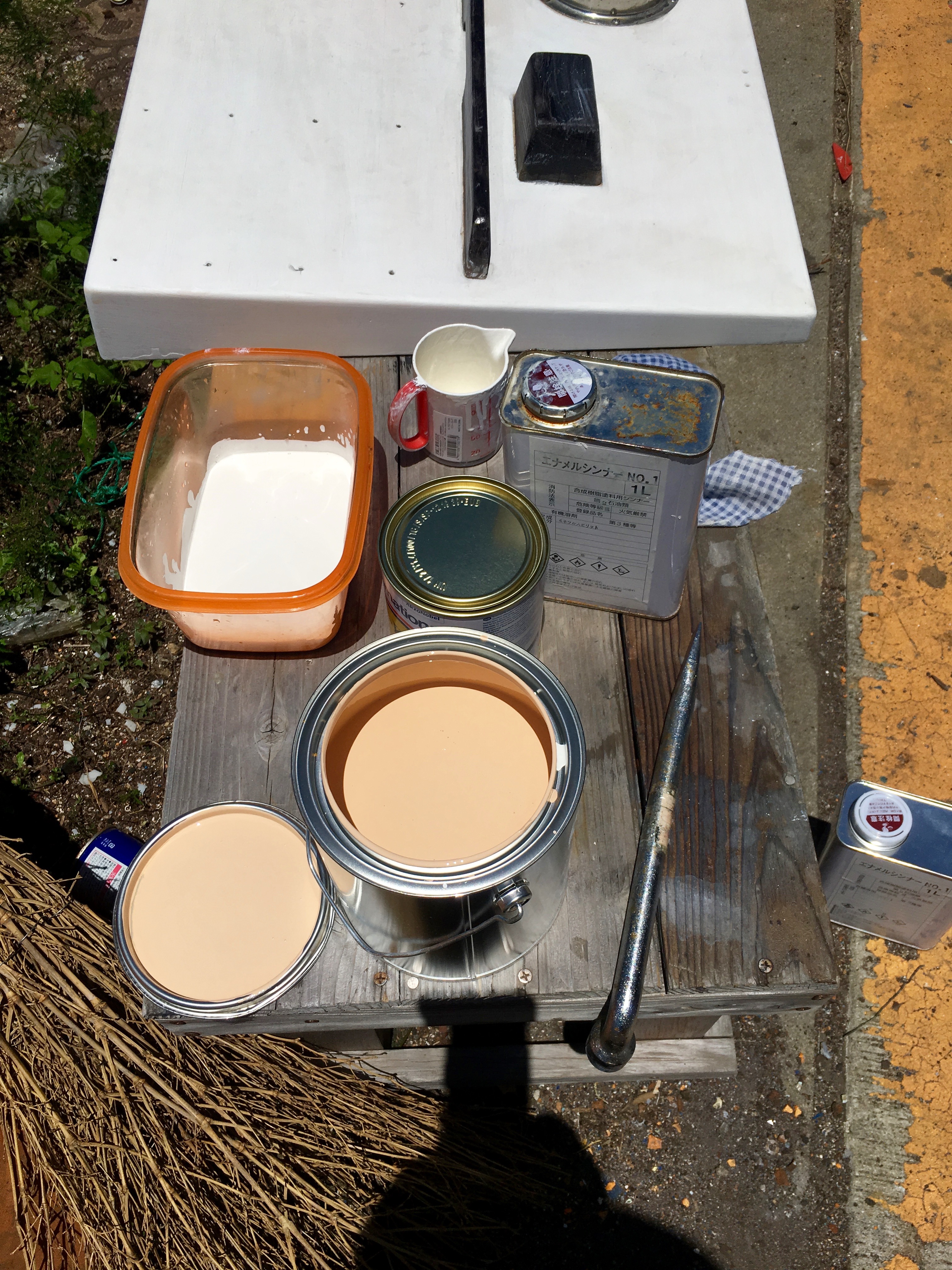 Saturday was the day to paint. Friend and ex colleague, Natori san, kindly offers to help. Two things go wrong. First, it is raining and second I do not have any paint.